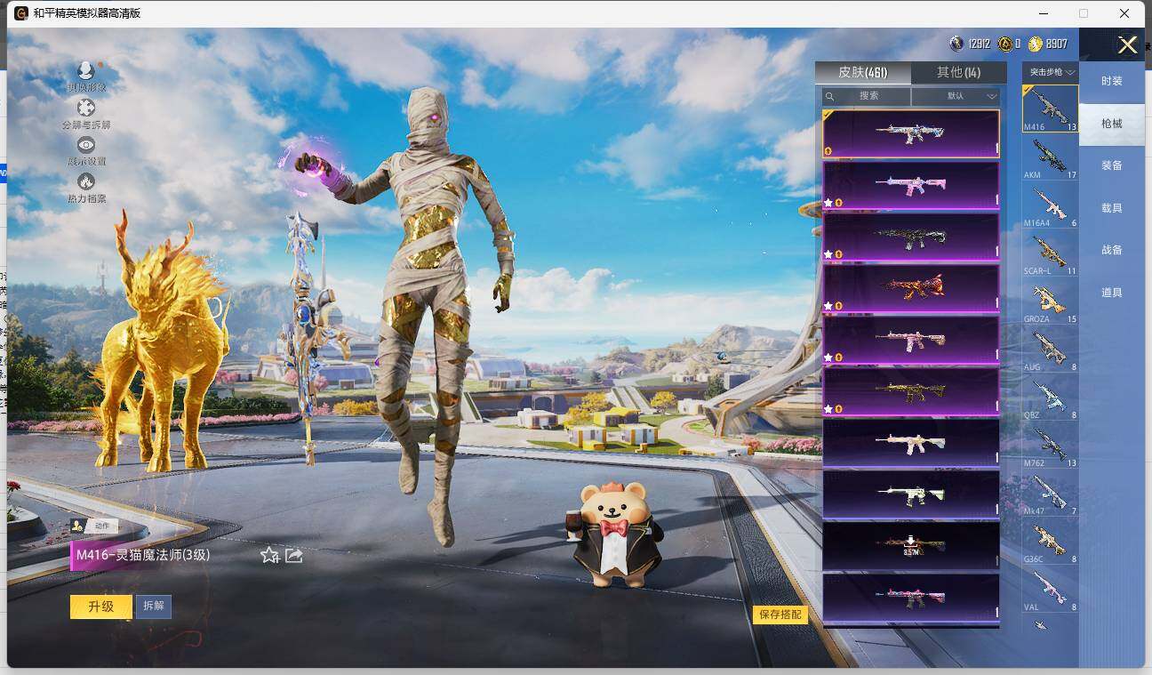AKM-炫紫旋律,AKM-梦之光华,AKM-幽焰骑士,SCAR-L-童趣迷兔,SCAR-L-金蛇镇世,M416-五爪金龙,M416-心之恋语,M416-风花雪月,M416-电玩时刻,M416-墨龙九天,GROZA-精灵之光,AUG-许七安,M762-激战未来,UZI-筑梦精灵,UMP45-量子极限,AKS-74U-信仰神谕,Kar98K-巳巳如意,M24-镜域双华,Mk14-樱桃泡泡,M200-梦海之灵,MG3-洛神天依,破片手榴弹-粉粉猫爪
