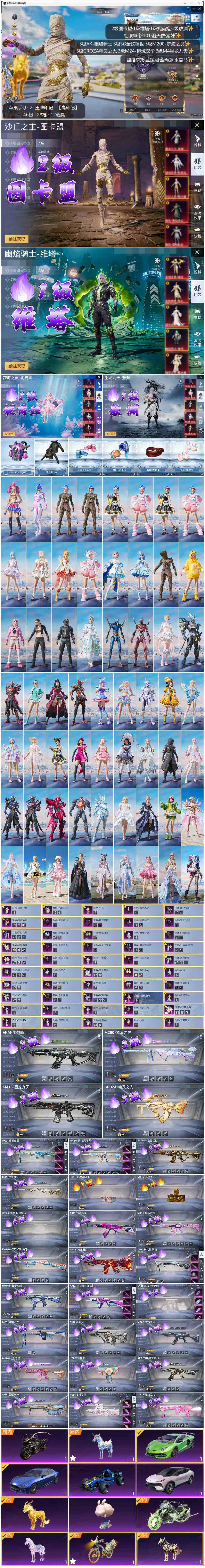 - [12084454]8粉装 4特效枪 3载具 14印记 可二次 可修改实名 连体王者 身法装备:都市猎人 优质装备:海龙奔腾,兰博基尼Estoque(银翼灰),兰博基尼Aventador SVJ(翡翠绿),都市猎人,梦幻火箭(新101)(新火箭少女101粉色套装),蝶舞迷情,宝贝奶油派,SCAR-L青春物语,七级SCAR-L-青春物语,千金淑猫,P90-冷漠罗丽,Kar98K-巳巳如意 时装数:524 枪械数:191 战备数:3 热门装扮:幻情紫藤,天之羽翼,复仇流浪者,暗夜玫瑰,潮萌小黄鸭,鹰眼刺客,都市猎人 载具:空客H135-蔚蓝之翼 稀有枪皮:DP-28-豹影疾电 六级特效枪:六级P90-冷漠罗丽 五级特效枪:五级Kar98K-巳巳如意,五级DP-28-豹影疾电 紫色装扮:田园牧歌,轻风白浪,SS22特训,莱茵河畔,白啸长虹,SS23特训,幻彩翩翩,妙红点点,娇憨猪猪,俏皮奶喵,萌趣咩咩,SS21特训,绚烂繁星,SS31特训套装,冰川特警,北国孤狼,SS30特训套装,云朵鹅,雪绒豹,SS33特训套装,青涩时光,顶瓜瓜,SS20特训,潮流游乐家,暗夜傀儡,冰爽风暴,飞驰魅影,音速流光,极速竞梦,SS19特训,军刀雅典娜,甜心亚梦,虚音幻奏,天籁歌者,瑞龙福将,团圆交子,SS17特训,焰山流火,异彩先驱,SS18特训,智慧隐士,都市魅力,长空猛禽,霓虹极客,霓虹街区,缤纷果语,蓝色运动,虎虎生威吉莉,街头潮人,跃动心情,骑行爱好者,魅力单车,麻辣教官,黄色名流,黄色运动,黎明保卫者,黑色伏地魔,冰河战士,龙魂突击队,蝶变,香桃花海,柠萌假日,海岛探路者,深蓝色名流,滨海假日,夏日音浪,幻世战舞者,探宝勇士,湖蓝色名流,滨海厨神,甜蜜菠萝,疯狂小兔子,白色伏地魔,破蛋小黄鸡,福星高照,空投萌叽,竞技勇士朋克,甜蜜熊情侣,牛气冲天,潮流炫酷,炫蓝之夏,热血青春,牛气满满,特战装甲,雏菊兔兔,萝兰蝴蝶,SS29特训,星途旅人,SS28特训,李逍遥,异域银装,鱼渊荷华,玉兔迎春,燕燕于飞,巳巳如意,海琴烟,青团波波,糖糖葫芦,竞技名士,街头风暴,银尘,SS25特训,粉红小猪,SS27特训,智谋强哥,SS6特训,SS7特训,SS8特训,大橘大利,SS9特训,SS10特训,SS11特训,蓝冰羽,紫幽梦,SS32特训服(SS32特训套装),风舞幻音,萌黄之夏,恋语绒绒,漫步者,金耀舞者,