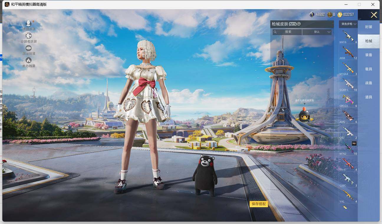 AKM-甜心宝贝,M16A4-垂柳戏鸭,SCAR-L-纯梦嫁纱,M416-暖熊萌萌,AUG-南国舞曲,P90-能量风暴,Kar98K-巳巳如意