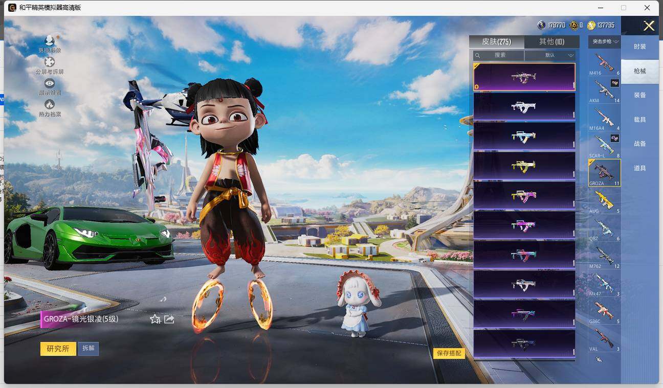M416-心之恋语,GROZA-镜光银凌,M762-激战未来,Kar98K-巳巳如意,MG3-洛神天依