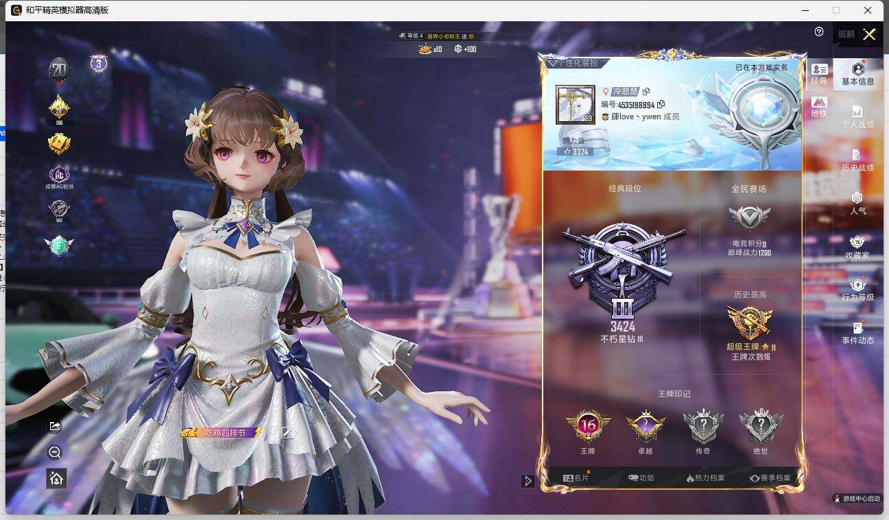 - PX_2095958-贵族等级: V8 英雄数: 124 皮肤数: 285 荣耀水晶: 天鹅之梦 星传说: 金色仲夏夜 传说皮: 云霓雀翎,末日机甲-孙尚香,仲夏夜之梦,音你心动-小乔,音你心动-周瑜,乞巧织情,超时空战士-狄仁杰,花朝如约,挚爱之约,挚爱花嫁,音你闪耀,山海·琳琅生,炽翼辉光 限定皮: 遇见飞天,游园惊梦,梁祝,白鹤梁神女,辉光之辰,白晶晶,天狼溯光者,天狼运算者,热情桑巴,纯白