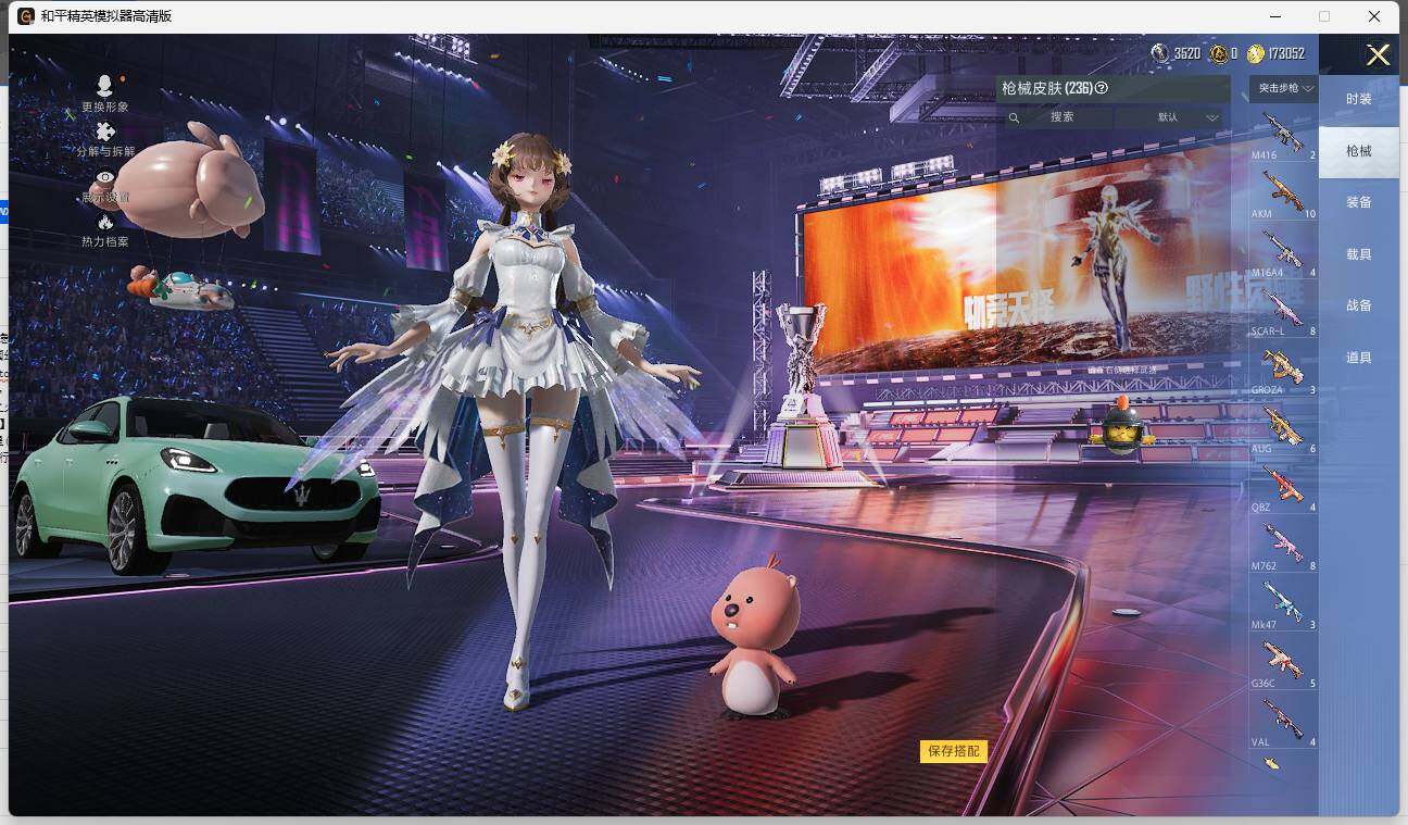 AKM-甜心宝贝,SCAR-L-梦幻火箭,SCAR-L-时空协奏,M416-超新星,GROZA-焦糖拿铁,M762-甜蜜誓约,P90-甜蜜草莓,Kar98K-巳巳如意,M24-镜域双华,MG3-洛神天依,烟雾弹-猫咪绅士,破片手榴弹-粉粉猫爪