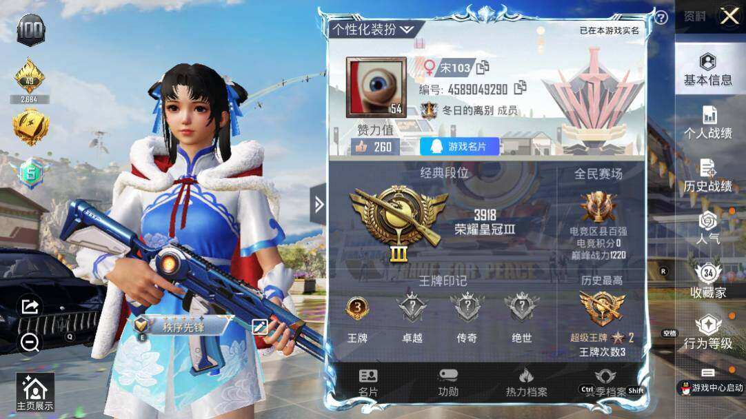 - [12053887]3粉装 1特效枪 1载具 1印记 可二次 可修改实名 社交场景限制 优质装备:冰魄,花灵,星渊 稀有枪皮:DP-28-豹影疾电 五级特效枪:五级DP-28-豹影疾电 紫色装扮:云朵鹅,雪绒豹,SS33特训套装,魅力单车,长空猛禽,深蓝色名流,蓝彩潮人,特殊使命,特训学院,猛禽,破蛋小黄鸡,竞技名士 优质战备:精灵梦叶罗丽降落伞,喜羊羊与灰太狼降落伞