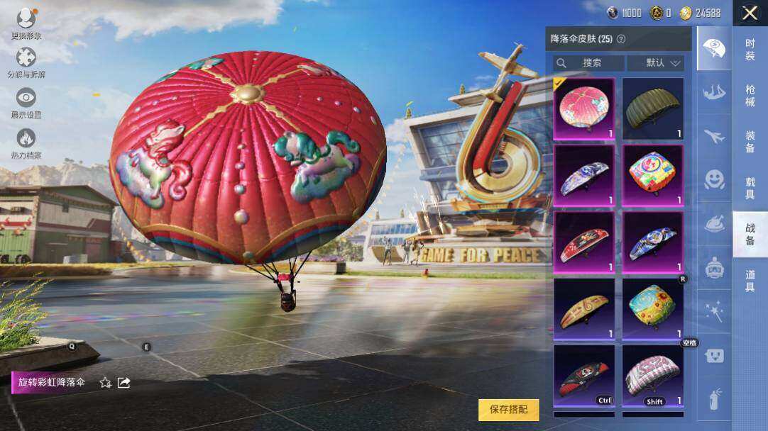 【粉色降落伞】:旋转彩虹降落伞,星际浪客降落伞,歌者泠鸢降落伞,炫光之旅降落伞,魔法神域降落伞