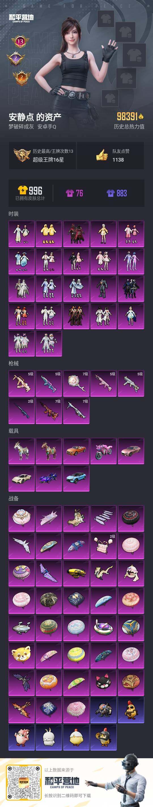- PX_2088271- 可二次 苹果手Q-5王牌印记-2粉装-5特效枪-0载具-24066热力值-54套装-78枪皮-2卓越印记-0传奇印记, 【2粉装】,智耀战神,女娲灵识, 【5特效枪】,M416-电玩时刻-5级,AUG-暖羊咩咩-5级,M762-鬼刀-6级,Kar98K-巳巳如意-5级,UMP45-量子极限-5级, 【3稀有紫装】,派对舞王,浪漫天命,龟仙人, 【54稀有时装】,蓝冰羽,恋语
