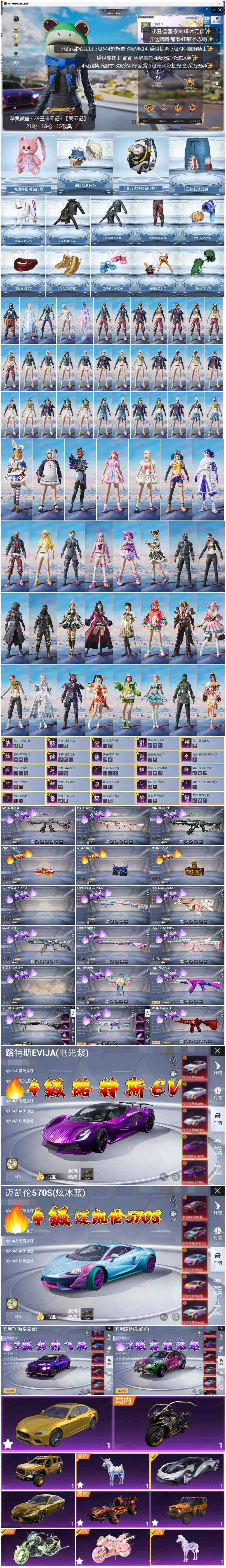- [11883582]8粉装 9特效枪 6印记 可二次 可修改实名 连体王者 优质装备:M416风花雪月,UMP45恐龙拽拽,SCAR-L-锦绣绵绵,PKM江南烟雨,七级UMP45-恐龙拽拽,M416电玩时刻,GROZA-镜光银凌,AUG-暖羊咩咩,智耀战神,冷漠罗丽,Kar98K-巳巳如意 热门装扮:飓风飞鹰,复仇流浪者,宙之时溯,星云暗核,蜜语绒猫,金丰海韵 稀有枪皮:DP-28-豹影疾电 六级特效枪:六级PKM-江南烟雨 五级特效枪:五级GROZA-镜光银凌,五级Kar98K-巳巳如意,五级DP-28-豹影疾电,五级AUG-暖羊咩咩,五级M416-电玩时刻,五级SCAR-L-锦绣绵绵,五级M416-风花雪月 紫色装扮:幻彩翩翩,SS31特训套装,极速光影,SS30特训套装,SS33特训套装,青涩时光,顶瓜瓜,圣诞惊喜,军刀雅典娜,英勇保护者,天籁歌者,长空猛禽,霓虹街区,缤纷果语,荣耀,魅力单车,龙的传人,蝶变,香桃花海,海岛探路者,涂山之恋,深蓝色名流,幻影武者,白色伏地魔,空岛之星,灼焰舞者,燃烧卡路里,雏菊兔兔,萝兰蝴蝶,SS29特训,狂花道·雅典娜,星途旅人,创世·幻影,SS28特训,冰公主,异域银装,鱼渊荷华,燕燕于飞,巳巳如意,都市丽猫,青团波波,糖糖葫芦,棉花软糖,竞技名士,街头风暴,深海梦境,惊鸿侠骨,甜梦熊熊,神气柴柴,懵萌河马,SS24特训(SS24特训套装),SS25特训,元气发射,金戈铁马,锦衣飞扬,粉红小猪,焰鹰斗篷,幻羽潜行,幽夜迷踪,SS27特训,萌趣绒叽,华灯初上,SS26特训,智谋强哥,星影赞美诗,SS32特训服(SS32特训套装),恋语绒绒 优质战备:江南烟雨降落伞,万古烈焰降落伞,超新星降落伞,恐龙拽拽降落伞,千金淑猫降落伞,蜜语绒猫降落伞,时光之吻飞行器,幻星舰长降落伞,荧海星豚降落伞,鬼刀降落伞,戏水时光降落伞,环太平洋降落伞,未来歌姬降落伞,梦幻火箭降落伞,飞行器-齐天大圣