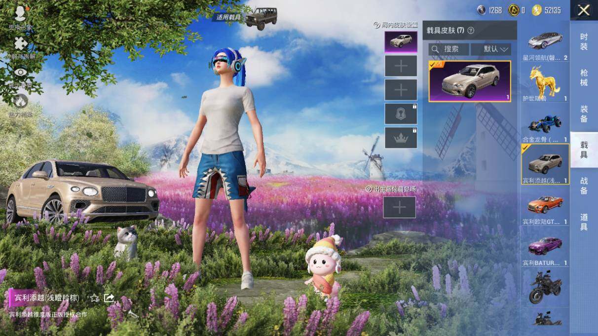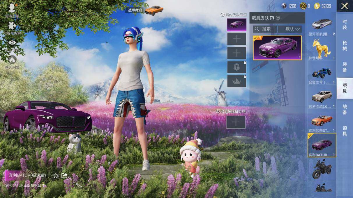 【粉色载具】:宾利欧陆GT敞篷(火焰橘),宾利BATUR(极速紫),宾利添越(浅瞪羚棕),宝马M4(圣保罗黄),星河领航(磐石银),合金龙骨(蓝),护世瑞兽