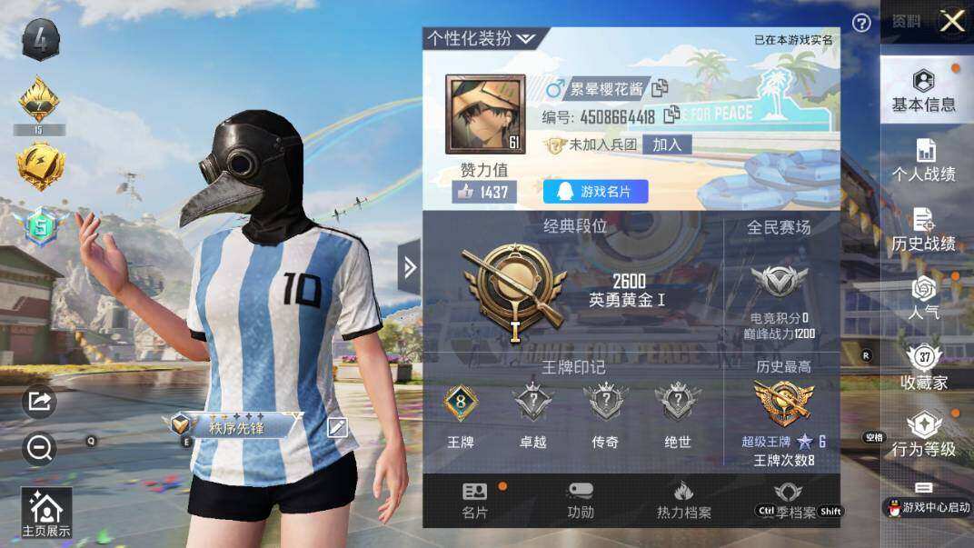 - PX_2100596-??/枪械5/装备160/战备97/王牌印记12/热力值49241/九级M416-至情至圣/三级M416-超新星/五级Kar98K-巳巳如意/六级M24-莲影清波/四级MK12-雪月幻音/岚岚物语/粉装-桃粉嫣然/角色-冷漠罗丽/套装-龟仙人/套装-巳巳如意/套装-燕燕于飞/套装-鱼渊荷华/套装-粉恋花/套装-紫幽梦/套装-蓝冰羽/套装-彩虹兔/套装-云朵鹅/套装-雪绒豹/角