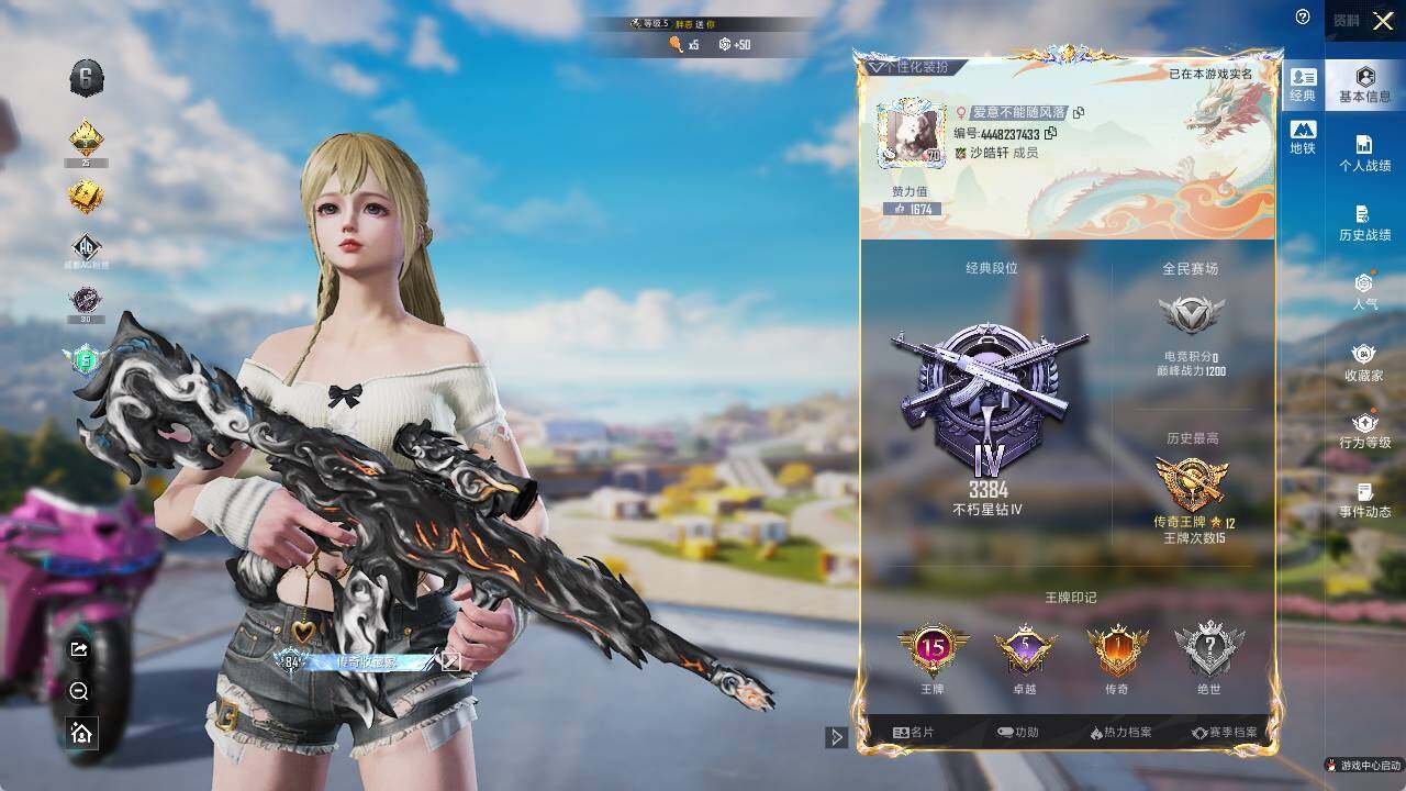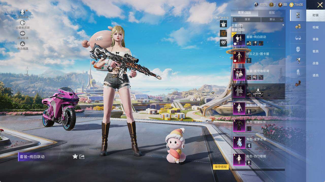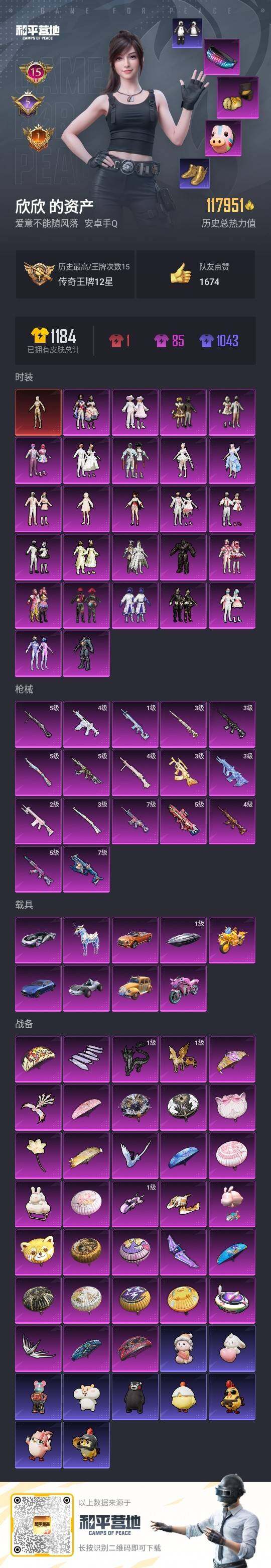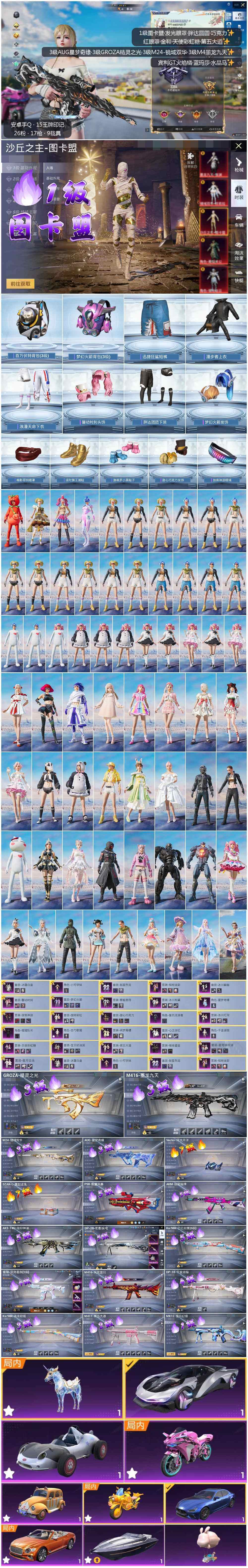 - [9854097]实名: 可修改 时装数: 196 枪械数: 65 战备数: 43 热门装扮: 宝贝奶油派,天使彩虹糖,橘柚倾心,暗夜魅影 稀有枪皮: M416风花雪月,GROZA-镜光银凌,Kar98K-巳巳如意,AUG-暖羊咩咩,MK14-甜梦熊击