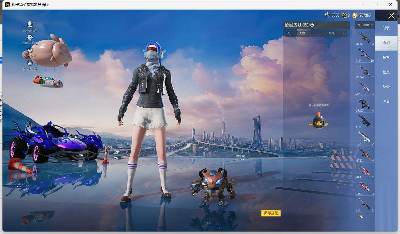 AKM-星际浪客,SCAR-L-梦幻火箭,SCAR-L-青春物语,M416-五爪金龙,Kar98K-巳巳如意,M249-绒雪飘舞