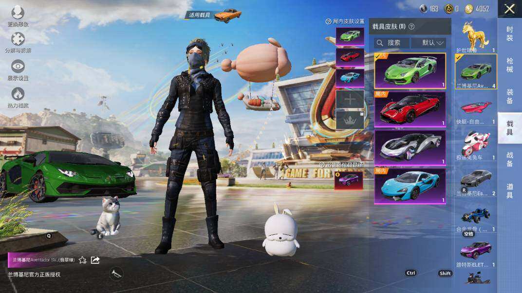 【粉色载具】:兰博基尼Aventador SVJ(翡翠绿),兰博基尼Estoque(银翼灰),路特斯ELETRE(电光紫),玛莎拉蒂Ghibli(粉),迈凯伦570S(天际蓝),帕加尼imola(光影红),时空跃影(星辉银),合金龙骨(蓝),极速兔兔车,僚机-萌兔起飞,快艇-自由的鲸,护世瑞兽