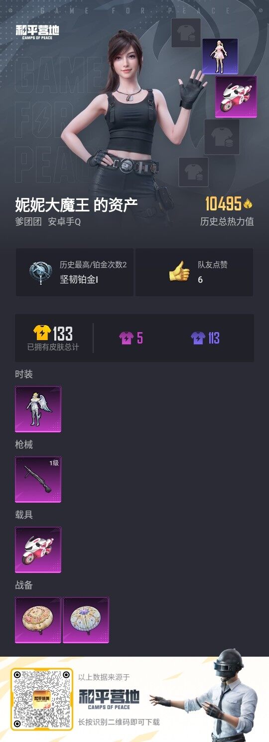 - [12281170]【特价急出/详情看图】:安卓 手Q-1粉装-3特效枪-1载具-1.1w热力值-2王牌印记-30套装-41枪皮【粉色载具】:路特斯EVIJA(星际黄)【粉色套装】:角色-冰炎战车【粉色枪皮等级】:AKM-绿萝繁花(五级),Kar98K-巳巳如意(四级),DP-28-豹影疾电(三级)