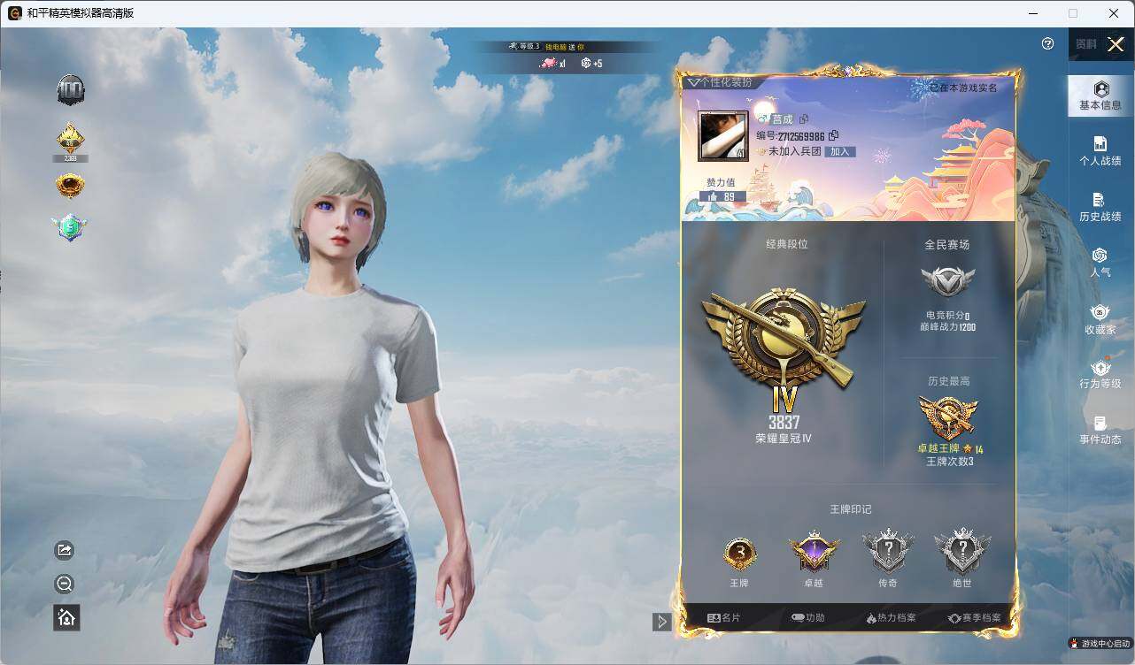 - PX_2084857-【妹子号,富婆女号 瑶妹 水手月亮 心动手记】实名: 可修改 贵族等级: V8 英雄数: 124 皮肤数: 224 荣耀水晶: 天鹅之梦 星传说: 金色仲夏夜 传说皮: 云鹰飞将,一念神魔,仲夏夜之梦,游龙清影,淬星耀世,永恒水手月亮,金乌负日,朵莉亚心动手记 限定皮: 游园惊梦,白鹤梁神女,魔法小厨娘,时之祈愿-瑶,时之奇旅-妲己,至美·化雀舞,至美·乘鲤谣,鸣野蒿