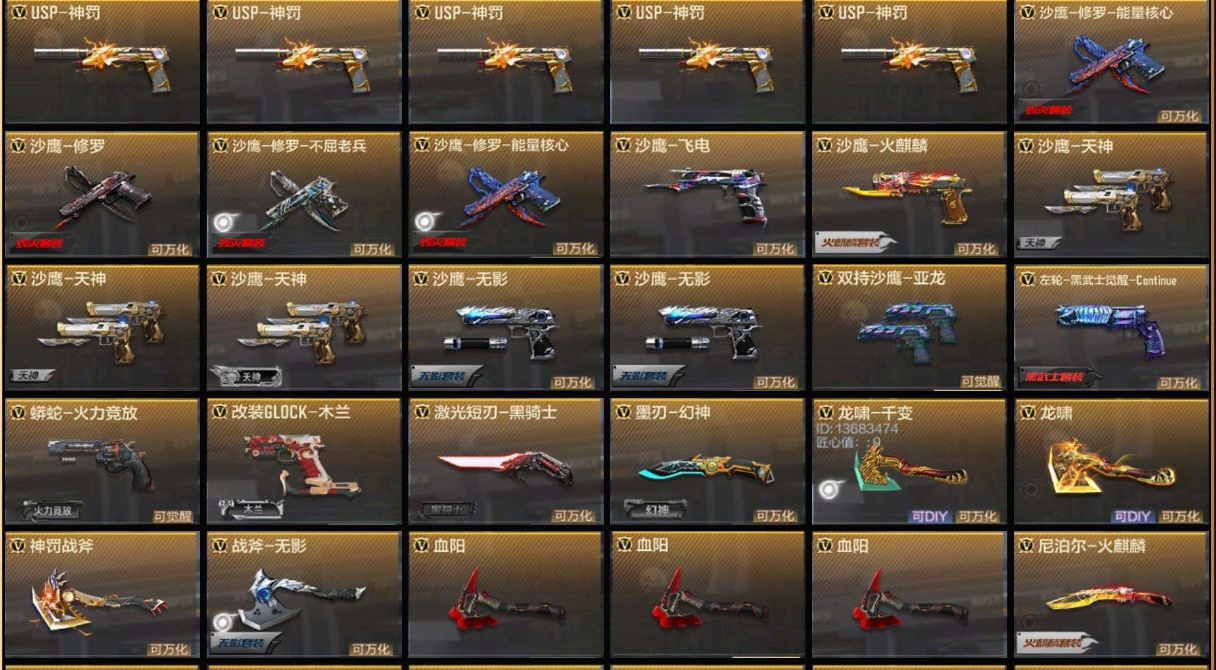 - [11851960]可二次 可修改实名 V7 6王者武器 146英雄武器 4英雄角色 265万化 枪皇SS 武器:王者之兽,王者之影,王者之心,王者之魄,AWM-妙才,MK47-仁德,M4A1-星象,AK47-混世魔王,CZ75-策,加特林-炼狱,王者之魂,COP 357-星象,M4A1-冰锋觉醒,AK47-机械迷城,AK47-黑武士觉醒,AK47-无影,AK47-变色龙,AK47-火麒麟,AK47-天使,巴雷特-极光,巴雷特-毁灭,AK47-波塞冬,M4A1-黑龙,M4A1-黑骑士,AK47-木兰,M4A1-死神,M4A1-雷神,QBZ95-天使,QBB95-极光,M4A1-心动次元觉醒,M4A1-猎神,AK47-沙漠郡主-超觉,AK47-血武士,AK47-幸运日觉醒,AK47-黑鲨,M4A1-玫瑰精灵,M4A1-海骑士,AK12-天启,9A91-天神,QBZ03-湮灭,SCAR-幽暗骑士,AWM-天龙,09式狙-天神,M200-心动次元,KSG-极光,AA12-火药,PP19野牛-造纸术,地狱火,地狱烈炎,打击者-天神,加特林-蟒蛇,加特林-堡垒,RPK-赤炎盘龙,9A91-魔蜥觉醒,M4A1-太白诗仙,蟒蛇-妙才,柯尔特-仲达,丈八蛇矛,尼泊尔-星象,穷奇铁扇,沙鹰-无影,双持沙鹰-变色龙,沙鹰-修罗,左轮-黑武士,改装GLOCK-木兰,沙鹰-神兵修罗,QSZ92-天使,QSZ92-金色蔷薇,QSZ92-华夏传说,M4A1-铁胆虎魄,三叉戟-波塞冬,百战巾帼枪,马来剑-毁灭,双持尼泊尔-变色龙,斩魔剑-天使,尼泊尔-冰锋觉醒,战斧-无影,消音沙鹰-牛魔王,CZ75-穷奇,龙啸,唐刀-华夏传说,麒麟刺,秋逸觉醒,屠龙,星芒,蝴蝶刀-天神,高爆手雷-雷霆,黑骑士闪光弹,黑武士烟雾弹,火麒麟闪光弹,火麒麟烟雾弹,火麒麟手雷,烟雾弹-游骑兵,闪光弹-游骑兵,燃烧弹-游骑兵,死神烟雾弹,死神闪光弹,死神手雷,高爆手雷-无限,AN94-盖,XM8-湮灭,M14EBR-葫芦山庄,王者之竞手雷,烟雾弹-神工天巧,蟒蛇-鼓龙,双持沙鹰-元让,DDM4-PDW-星际宇航觉醒,CZS2-仲康,掠夺者P365-虹舞,炽芒蝶刀,破邪蛇棍觉醒,甩棍-卧龙觉醒,马来剑-耀金伯爵,气勇胆烈戟,AWM-指南针,QBZ97-浩瀚征途,烟雾弹-星际宇航,手雷-游骑兵,黑骑士燃烧弹
