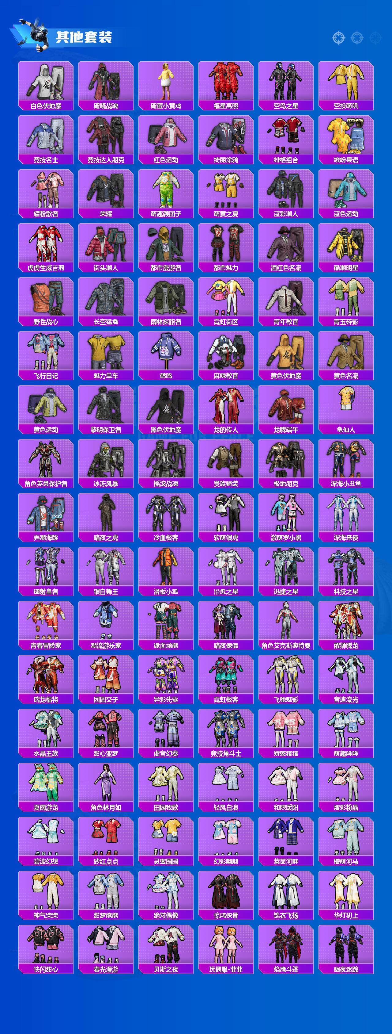 【粉色枪皮】:GROZA-镜光银凌,AKS-74U-星穹咏叹调,Kar98K-巳巳如意,Kar98K-圣域龙灵,M24-莲影清波,AMR-智耀战神,SPAS-12-音爆索尼克,破片手榴弹-瓶中星球
