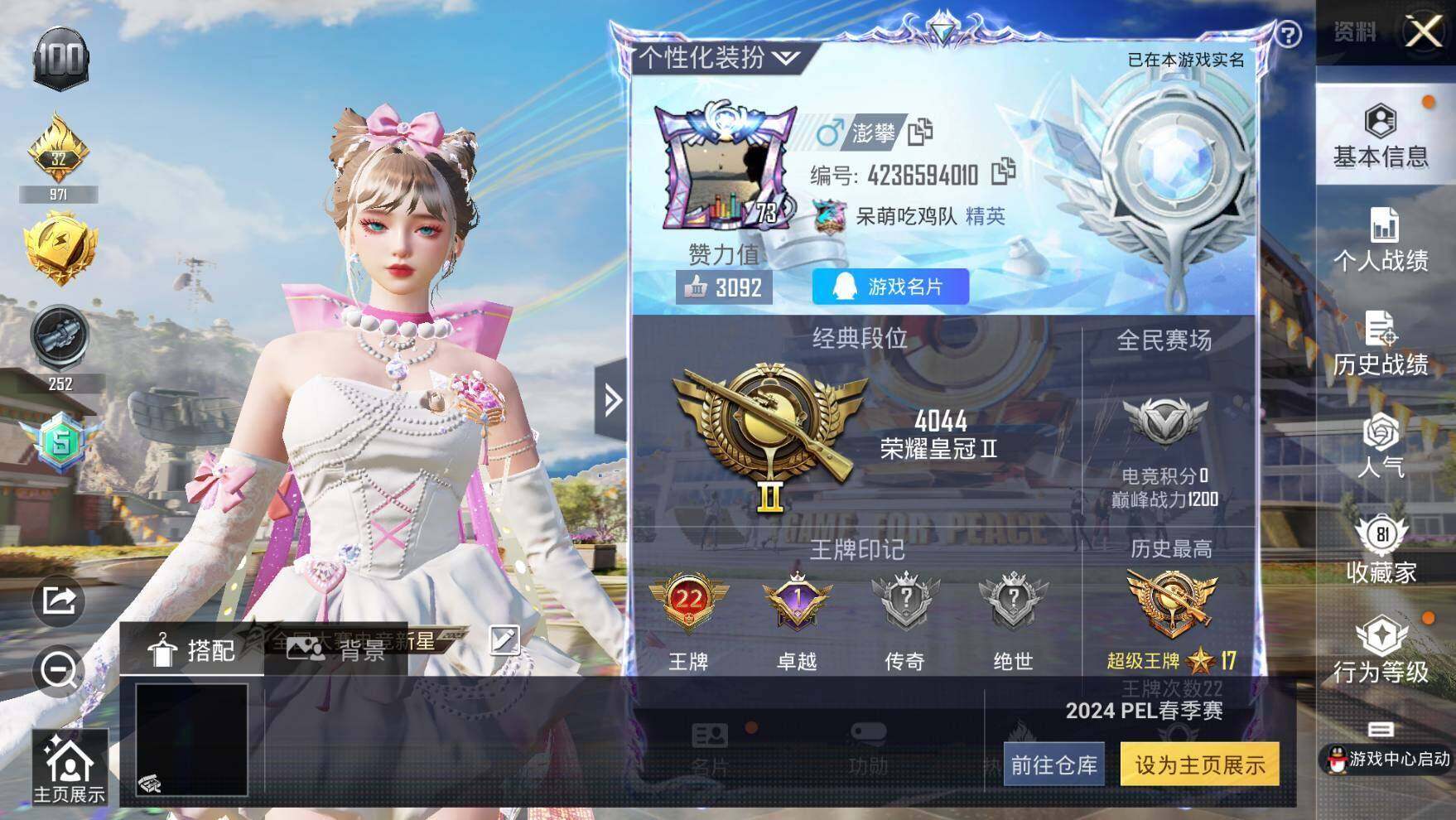 - [12233733]6粉装 5特效枪 可二次 可修改实名 女号 优质装备:梦幻火箭(新101)(新火箭少女101粉色套装),宝贝奶油派,天使彩虹糖,冰霜白皇,M417第五大道,AMR炫光之旅,SPAS-12蜜语绒猫,七级M417-第五大道,星穹咏叹调,Kar98K-巳巳如意 热门装扮:第五大道 稀有枪皮:DP-28-豹影疾电 六级特效枪:六级AMR-炫光之旅 三级特效枪:三级DP-28-豹影疾电,三级SPAS-12-蜜语绒猫 二级特效枪:二级Kar98K-巳巳如意 紫色装扮:轻风白浪,SS22特训,莱茵河畔,SS23特训,幻彩翩翩,妙红点点,娇憨猪猪,樱桃黑巧,萌趣咩咩,SS21特训,霓虹热舞,SS30特训套装,SS20特训,梦起落英,潮流游乐家,SS15特训,星河入梦,SS13特训,治愈之星,科技之星,SS14特训,萌趣颜团子,吉莉礼服,长空猛禽,霓虹街区,缤纷果语,耀眼新星,飞行日记,魅力单车,鹤鸣,麻辣教官,龙的传人,龟仙人,柠萌假日,幻世战舞者,福星高照,空岛之星,牛气冲天,牛气满满,猛禽,巳巳如意,竞技名士,惊鸿侠骨,SS24特训(SS24特训套装),SS25特训,锦衣飞扬,2B战斗服款,SS27特训,牛仔情诗,华灯初上,SS26特训,春光漫游,快闪甜心,淡雅花蕊,玲珑飞花,神秘舞者,大橘大利,SS12特训,抹茶蜜豆,薄荷蓝莓,纯白誓言,暗夜契约,耀粉歌者,绯格组合,萌黄之夏 优质战备:圣堂之誓降落伞,闲梦青缨降落伞,海螺星光降落伞,垂柳戏鸭降落伞,未来歌姬降落伞,第五大道降落伞,甜心宝贝降落伞,春暖花开降落伞,飞行器-春暖花开,梦幻火箭降落伞,梦幻火箭飞行器,甜蜜誓约降落伞,飞行器-甜蜜誓约,夏日绵绵冰降落伞,四圣焕新降落伞,飞行器-激战未来,银刃赛罗降落伞,王牌四分卫降落伞,暗夜玫瑰降落伞