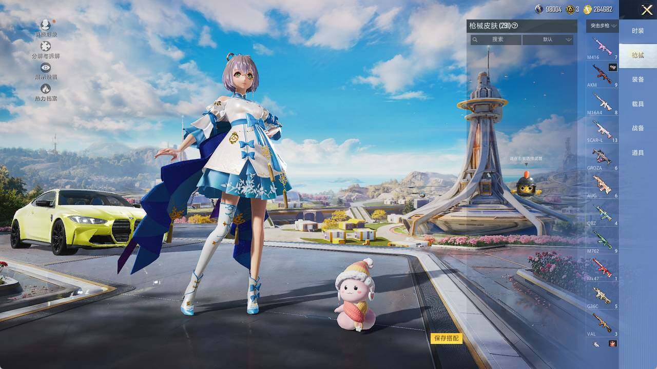 M416-电玩时刻,GROZA-镜光银凌,AUG-暖羊咩咩,M762-青锋波束,UMP45-量子极限,Kar98K-巳巳如意,M417-第五大道