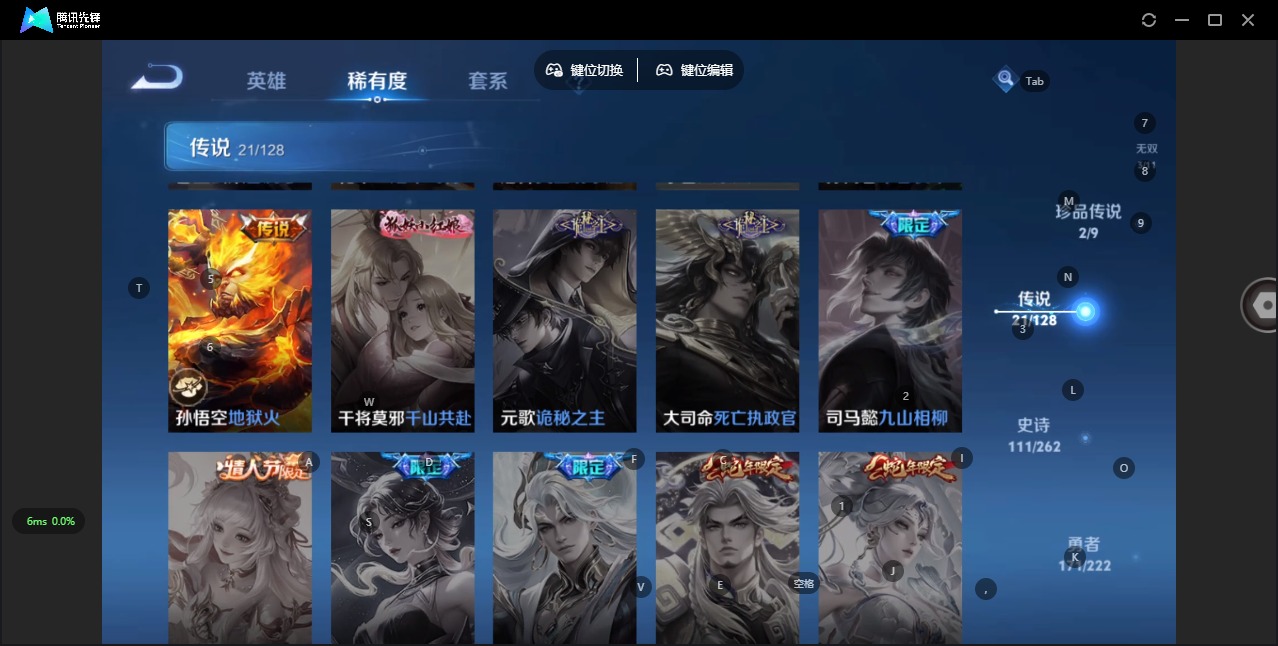- [11609265]V6 6传说 115英雄 96皮肤 可修改实名 优质装备:地狱火,淬星耀世,涂山容容 传说皮:九山相柳 限定皮:鸣野蒿,诗剑行,齐天大圣,李小龙,时之奇旅-妲己 史诗皮:鸭鸭历险记-刘禅,龙之律动,百相守梦-周瑜,幻珠鲛人,怒海争锋,百相守梦-黄忠,特工魅影,白蛇,猫狗日记-孙策,乱世虎臣,水果甜心,功夫厨神,暗隐猎兽者,鬼剑武藏,舞动绿茵,逐浪之夏,箭羽风息,金属风暴,鹰眼统帅,魅力维加斯,未来纪元-赵云