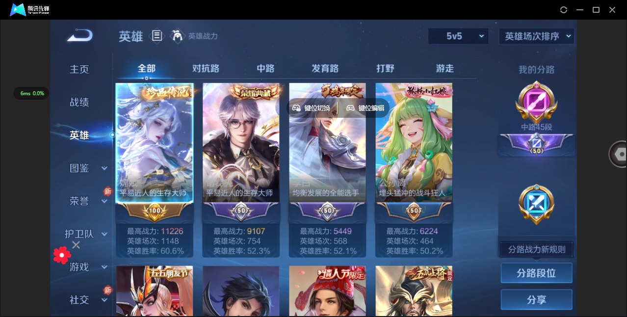 - [12076406]V6 3传说 123英雄 125皮肤 可修改实名 优质装备:李逍遥,无双飞将 传说皮:乘龙·淬吴钩(孙策年限) 珍宝阁皮:妄想食味 限定皮:匿光决锋者,李小龙,朱雀志(守约年限),孙行者 史诗皮:龙之律动,百相守梦-黄忠,白龙吟,黄金分割率,江河有灵,魅语,百解令(蒙犽),高渐离燃音魔法,冰冠公主,晚萤,猫狗日记-孙策,乱世虎臣,节奏热浪,修罗,女仆咖啡,水果甜心,鬼剑武藏,乘风破浪,逐浪之夏,水晶猎龙者,箭羽风息,金属风暴,圣诞狂欢,鹰眼统帅,魅力维加斯,赏金猎手,天秀·音浪