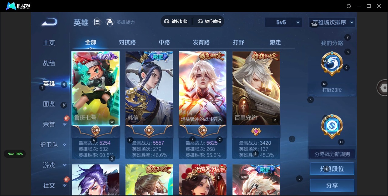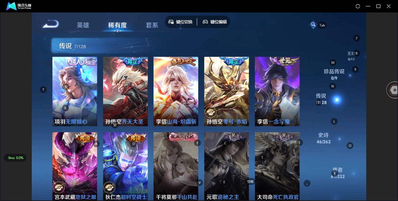 - [11348857]V5 4传说 123英雄 138皮肤 可修改实名 传说皮:幻光神枪 珍宝阁皮:蔷薇恋人 限定皮:愿照·众生和(妲己年限),鸣野蒿,至尊宝,武陵仙君(小桃花),梁祝,天狼狩猎者,天狼征服者,李小龙,逐梦之光 史诗皮:器灵·浮梦炉,化蝶舞,百相守梦-黄忠,紫霞仙子,黄金分割率,特工魅影,时之恋人-孙尚香,水果甜心,功夫厨神,德古拉伯爵,暗隐猎兽者,鬼剑武藏,舞动绿茵,纤云弄巧,繁星吟游(呼啦呼啦),缤纷独角兽,逐浪之夏,曙光守护者,金属风暴,圣诞狂欢,鹰眼统帅,无心,未来纪元-赵云