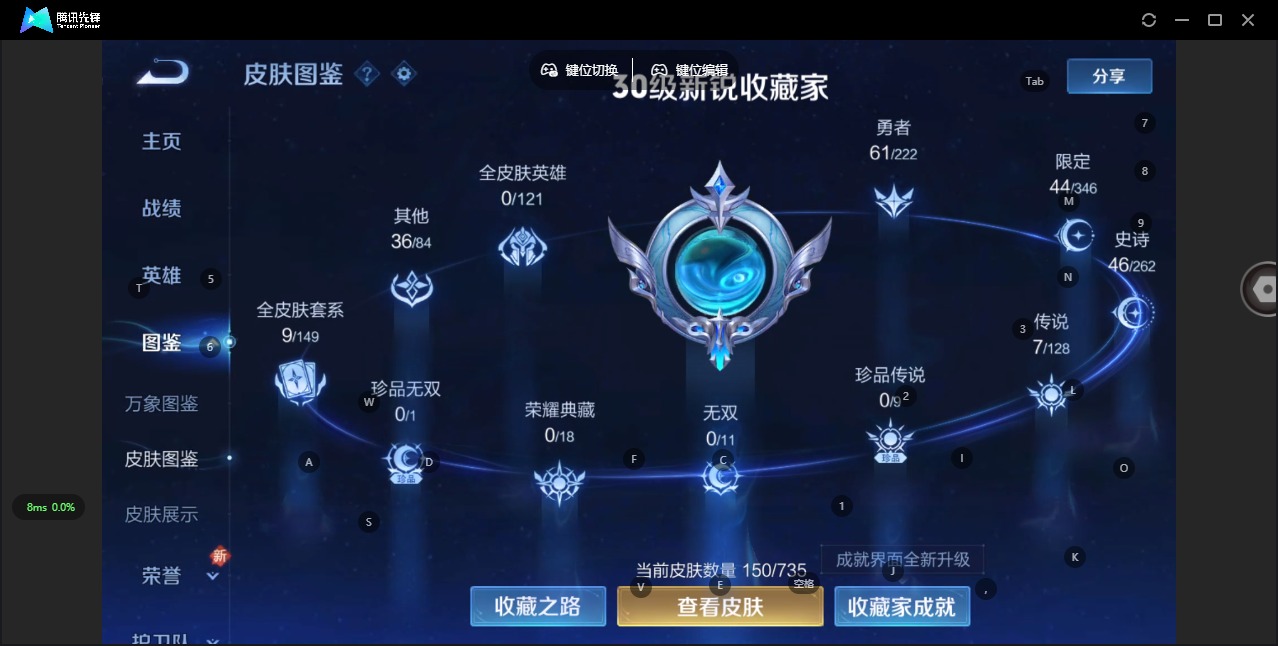 - PX_2099642-安卓Q-可二次-贵8-124英雄-258皮肤-1典藏-1珍品传说-27传说-85限定-高质量精品号-怪盗基德.乘龙·问璇玑,战鼓燎原,无双飞将,炽阳神光,启明星使,地狱火,黄金狮子座,云鹰飞将,乞巧织情,淬星耀世,浮生妄,山海·炽霜斩,诗剑行,愿照·岁时盈,愿照·山河定,愿照·千秋盛,愿照·九州拓,幻光神枪,祥瑞亨通,云诺千山,续相思.12个性按键.贵族积分7.9万-营地ID