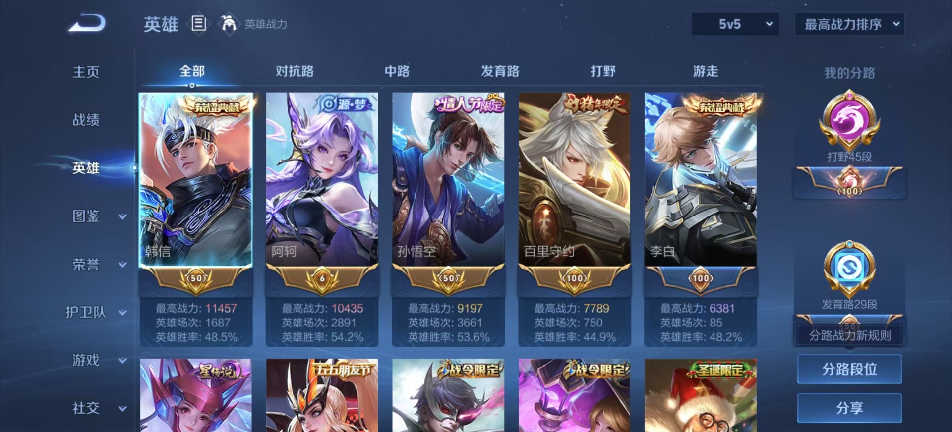 - PX_2090086-实名: 可修改 贵族等级: V5 英雄数: 66 皮肤数: 33 传说皮: 音你心动-小乔 限定皮: 五谷丰年