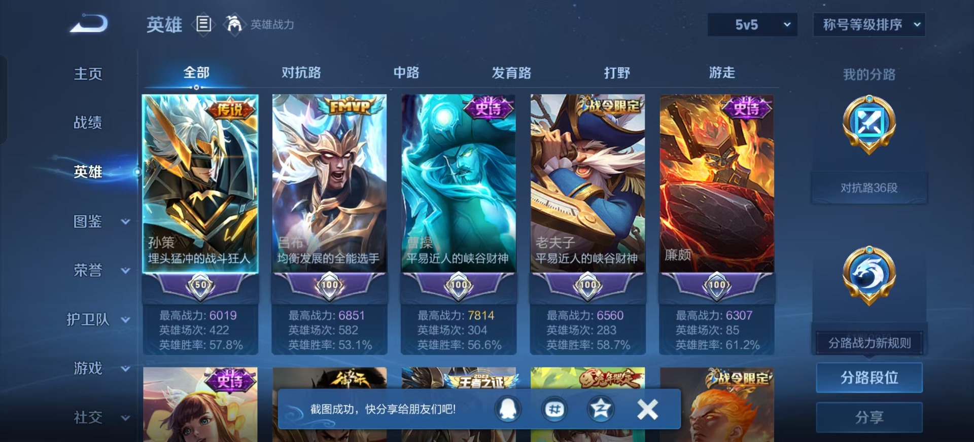 [12195855]V6 5传说 123英雄 188皮肤 可修改实名 优质装备:时之恋人-刘备(电焊工),末日机甲-孙策,无双飞将,山海·苍雷引(电光曜子) 珍宝阁皮:胡桃夹子,优雅恋人,蔷薇恋人,玩趣恶龙 限定皮:傲雪梅枪,怒海麟威,五谷丰年,游园惊梦,李小龙,逐梦之影,朱雀志(守约年限),山海·玄木吟(马可年限) 史诗皮:龙之律动,黄金分割率,特工魅影,千年之狐,江河有灵,百解令(蒙犽),蒙恬荣光圣徽,晚萤,偶像歌手,末日机甲-吕布,猫狗日记-孙策,乱世虎臣,节奏热浪,修罗,水果甜心,星夜王子,德古拉伯爵,暗隐猎兽者,幽灵船长,鬼剑武藏,地狱岩魂,纤云弄巧,逐浪之夏,曙光守护者,金属风暴,原初追逐者,圣诞狂欢,鹰眼统帅,黎明之约,赏金猎手,无心,未来纪元-赵云