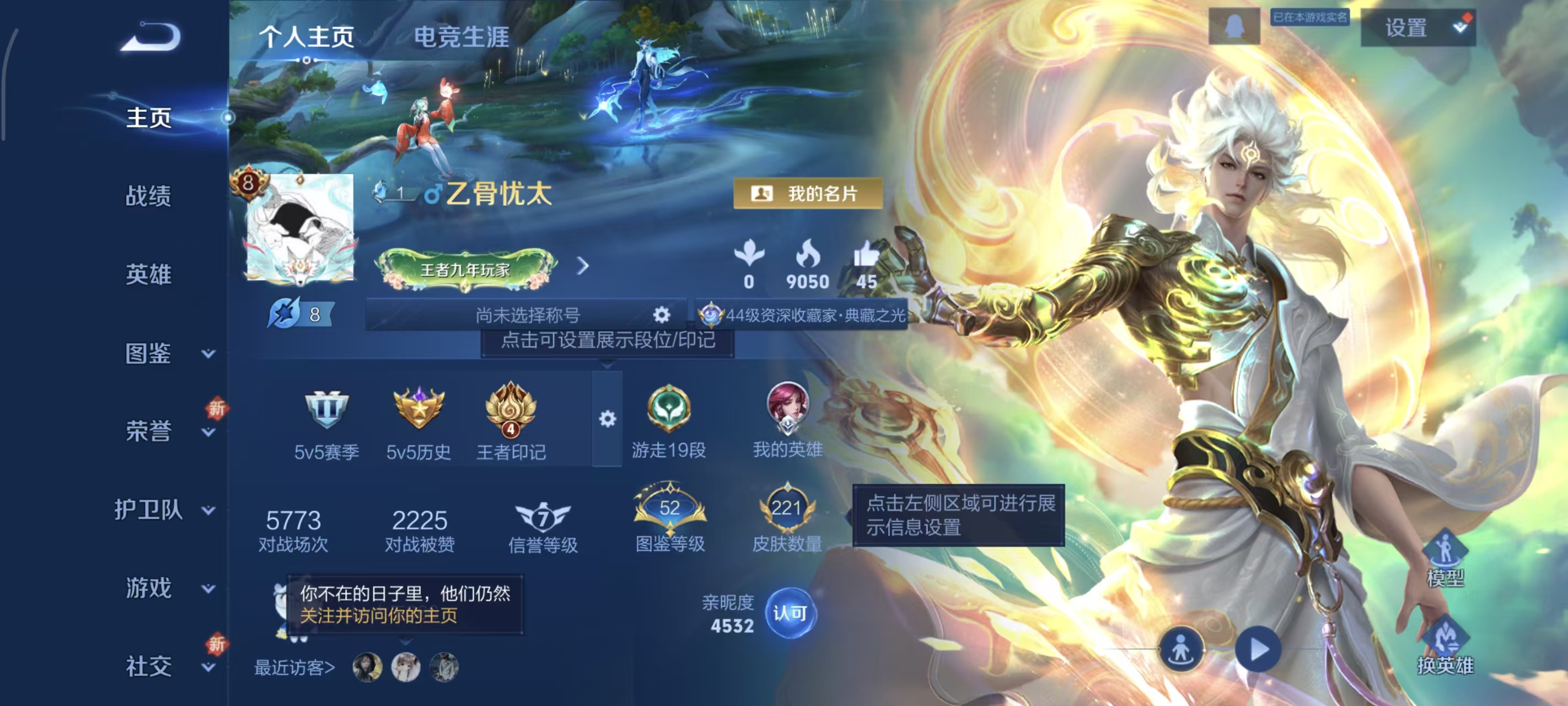 - PX_2077737-贵族等级: V5 英雄数: 81 皮肤数: 53 传说皮: 云鹰飞将,一念神魔 限定皮: 李小龙,梁祝,时雨天司,高山流水,孙行者