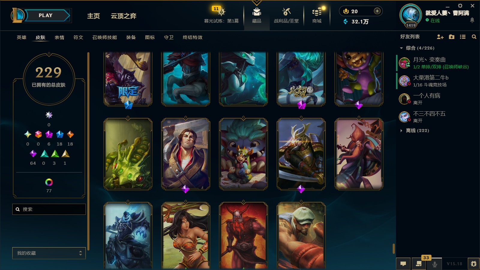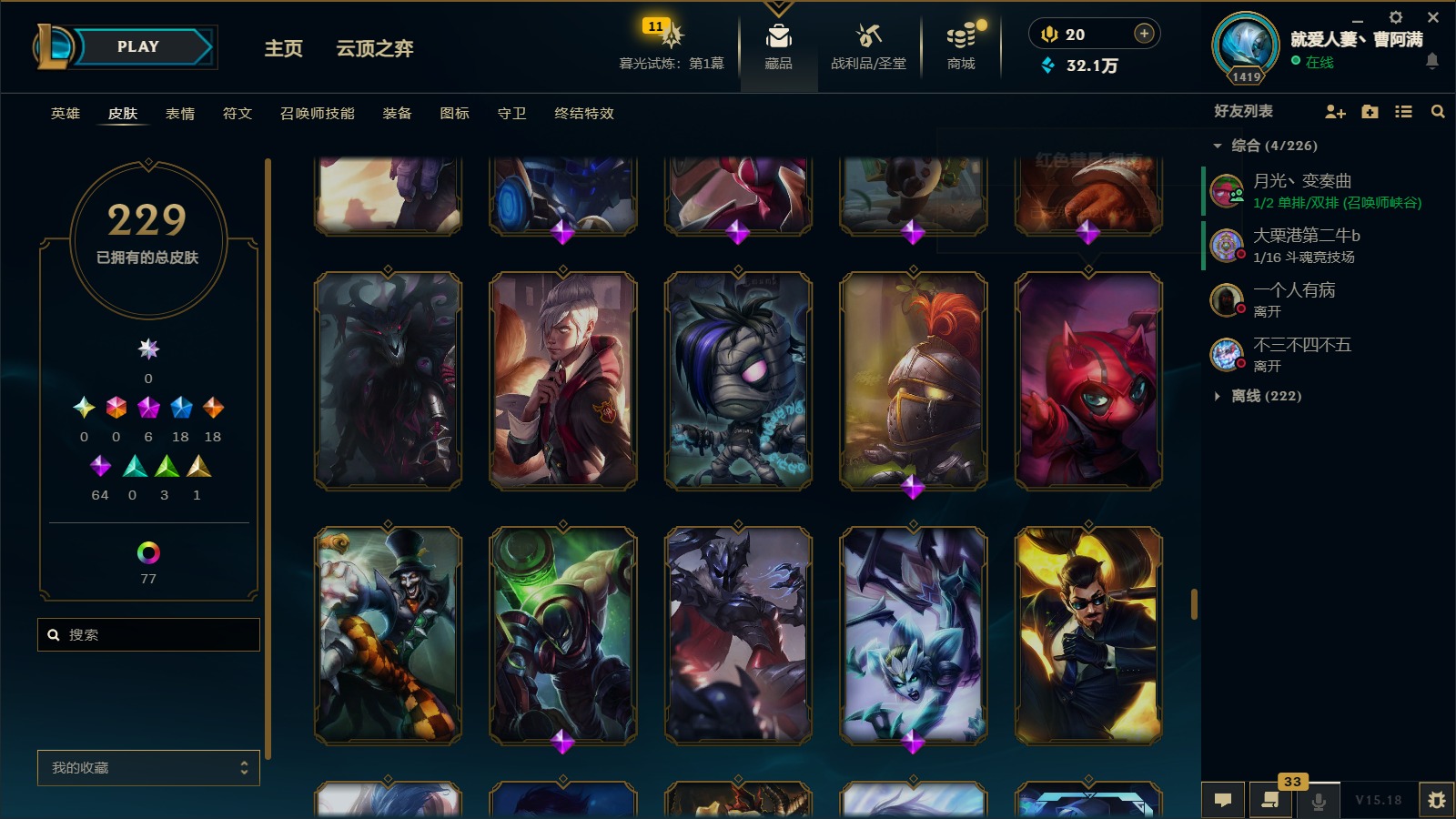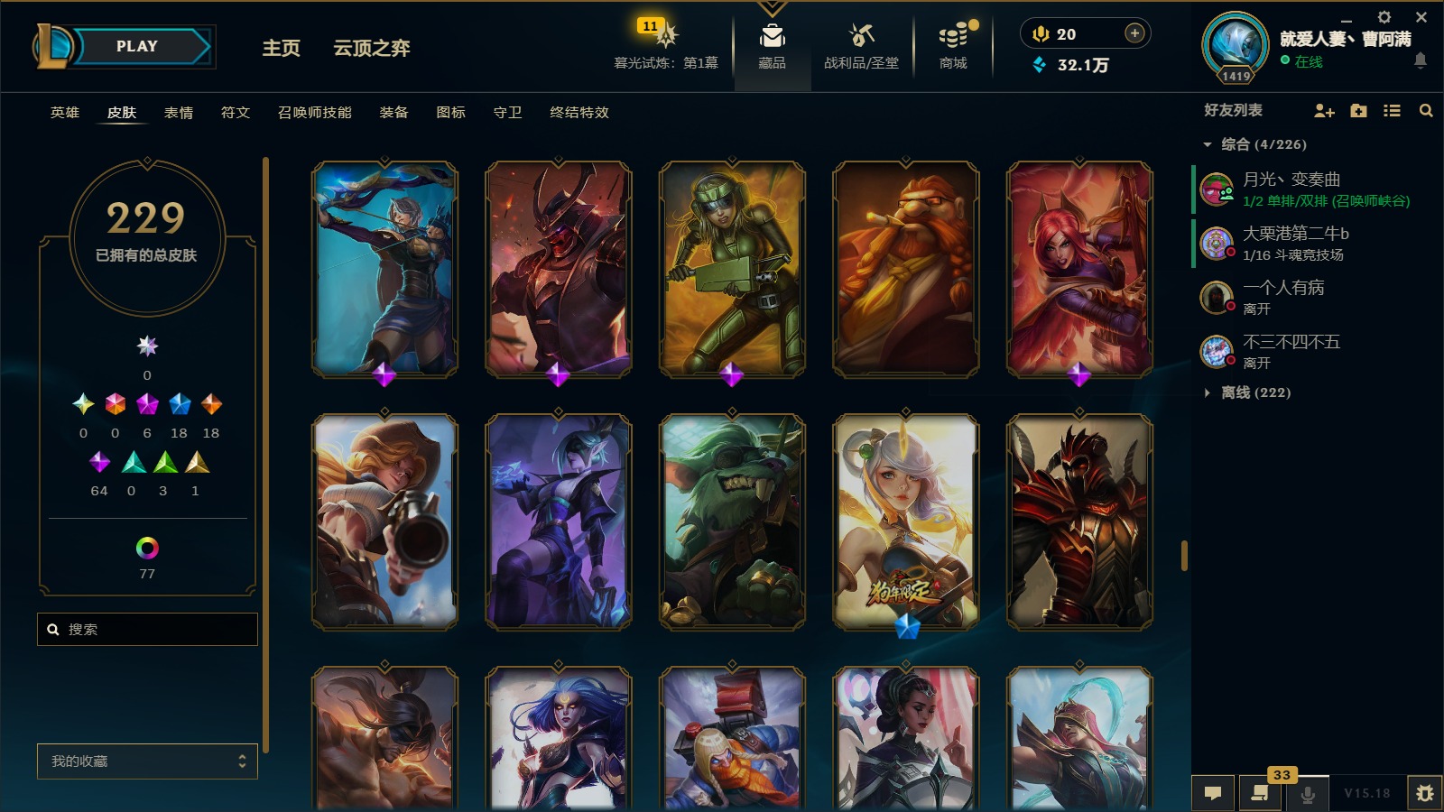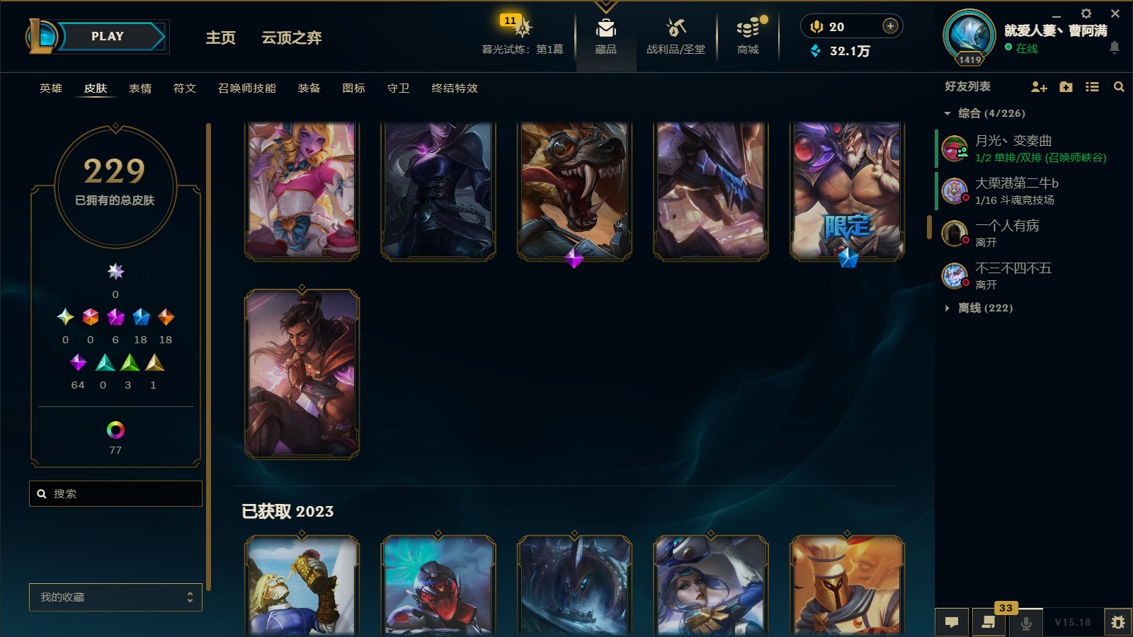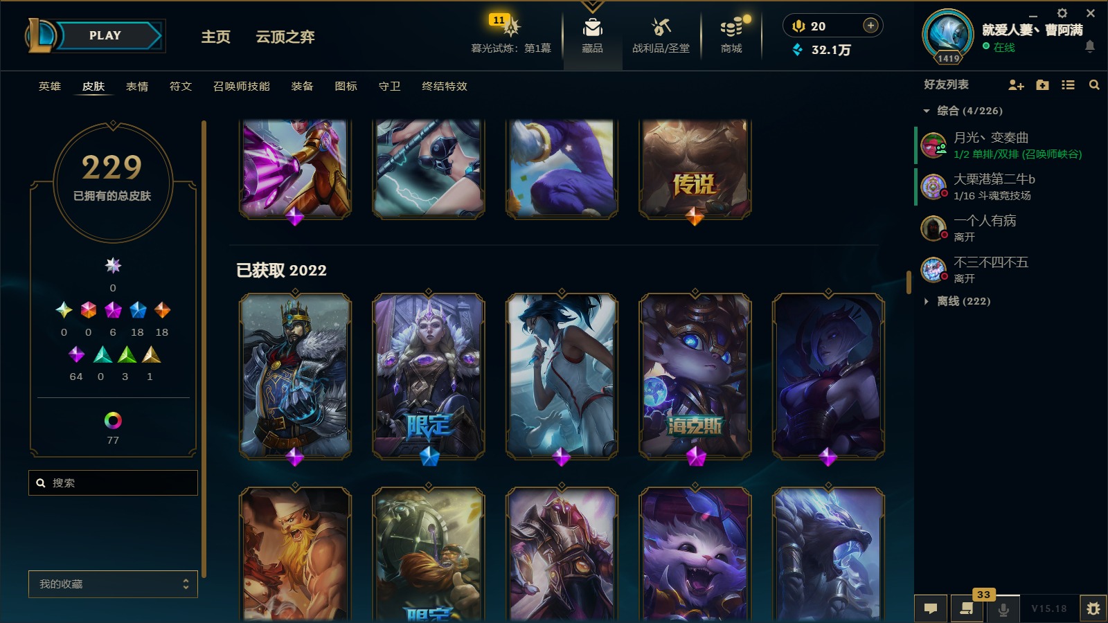 [12195981]6神话 18限定 18传说 64史诗 229皮肤 84炫彩 171英雄 可二次 可修改实名 优质装备:源代码 乐芙兰,防爆天使 凯尔,暗影 沃里克,都铎王朝 图奇,冠军之隐 劫,冠军之血 希瓦娜 凯旋圣装,净雪之月 莫甘娜 冬虹,十五周年纪念 希维尔,魔女 阿卡丽 虚荣 海克斯:海克斯 嘉文四世,海克斯 波比 赛季限定皮:胜利凤凰 艾尼维亚,胜利之运 崔斯特,胜利剑圣 易,胜利女神 娑娜,胜利巨口 克格莫,胜利之王 泰达米尔,胜利机器人 布里茨,胜利女神 瑟庄妮 冠军限定系列:S1FNC 酒桶,S1FNC 嘉文四世 冰雪节限定:冰雪节 炼金,平安夜女神 娑娜,邪恶圣诞老人 维迦 年限:狗年 光辉 周年:10周年 安妮,10周年 凤凰