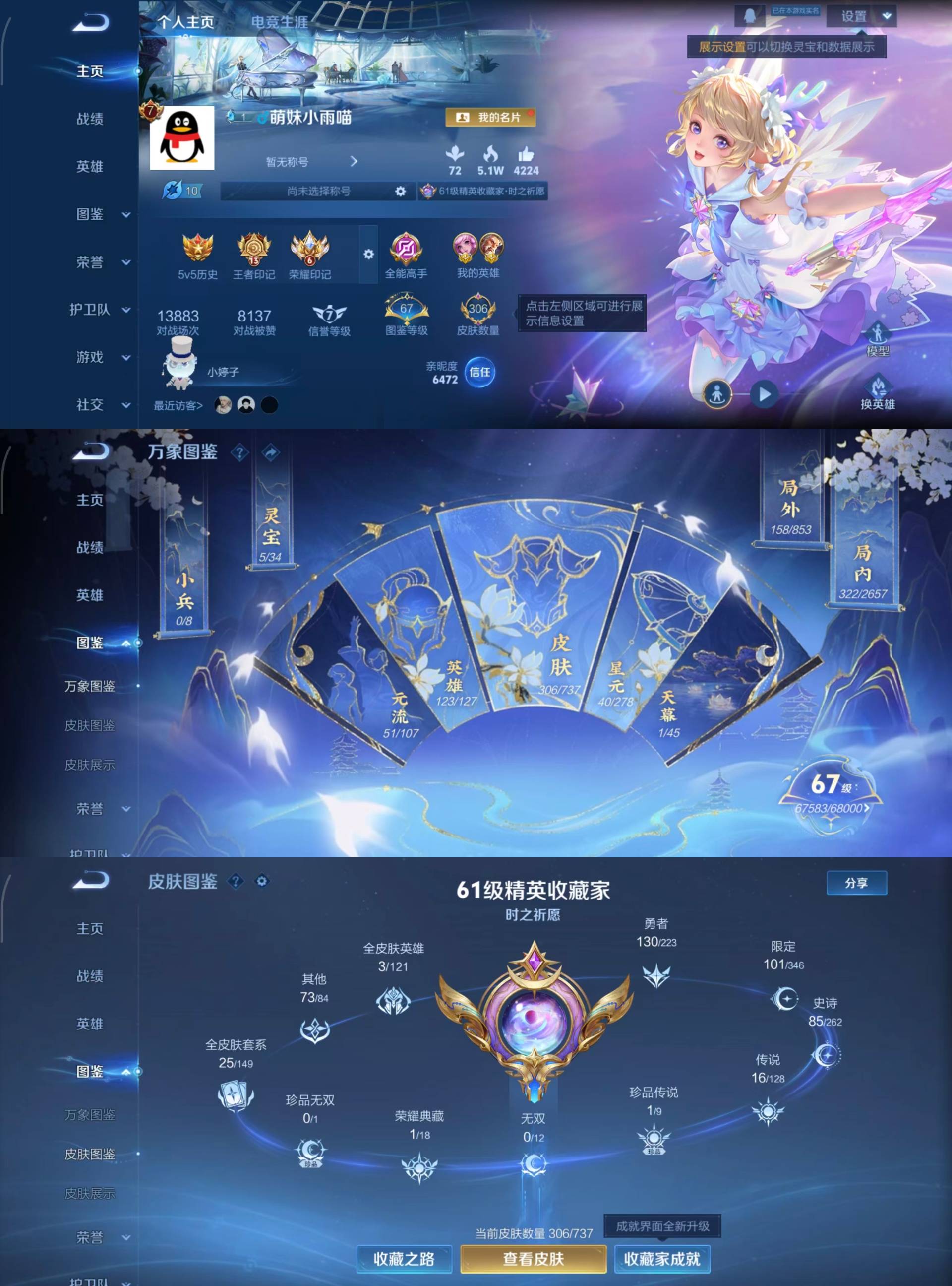 [12196024]可二次修改-安卓QQ 贵族8 荣耀典藏1 珍品传说1 星元皮肤3 传说皮肤16 史诗皮肤85 皮肤数量306 皮肤价值:217000 英雄123【荣耀皮肤】1 瑶_拾光映像 【珍品传说】1 马可波罗_怪盗基德 【星元皮肤】3 时之愿境 未来机甲 金色仲夏夜 【传说皮肤】16 桑启_鸣野蒿 孙膑_小动物乐团 曜_李逍遥 瑶_时之祈愿 虞姬_启明星使 公孙离_记忆之芯 蔡文姬_花朝如约 小乔_音你心动 貂蝉_仲夏夜之梦 孙尚香_末日机甲 花木兰_燃星之曲 王昭君_星穹之声 娜可露露_前尘镜 澜_逐花归海 西施_游龙清影 镜_炽阳神光 【史诗皮肤】85 牛魔_星界战将 狄仁杰_魔术师 赵云_皇家上将 上官婉儿_神器万象笔 马可波罗_山海玄木吟 瑶_山海碧波行 孙膑_寅虎展翼 杨玉环_寅虎心曲 牛魔_奔雷神使 云中君_时之祈愿 貂蝉_唤灵魅影 瑶_遇见神鹿 马超_神威 西施_至美乘鲤谣 鲁班七号_乒乒小将 大乔_白鹤梁神女 阿古朵_江河有灵 鬼谷子_五谷丰年 庄周_高山流水 上官婉儿_梁祝 甄姬_游园惊梦 鲁班七号_蔬乡物语 高渐离_燃音魔法 司空震_地狱燃心 戈娅_驭风魔法 扁鹊_奇幻香踪 暃_星界游侠 钟无艳_超时空战士 狂铁_电玩高手 明世隐_吟游魔法 黄忠_火炮绅士 干将莫邪_真爱魔法 老夫子_航海奇遇记 米莱狄_胡桃异想国 元歌_云间偶戏 沈梦溪_匿光破解者 孙膑_天狼运算者 公孙离_玉兔公主 刘禅_电玩爆裂旋风 弈星_滕王阁序 艾琳_奇遇舞章 澜_赏金猎手 沈梦溪_月团寄思 娜可露露_晚萤 大乔_猫狗日记 阿轲_节奏热浪 程咬金_功夫厨神 李元芳_逐浪之夏 刘禅_天才门将 百里守约_特工魅影 安琪拉_心灵骇客 雅典娜_冰冠公主 亚瑟_心灵战警 兰陵王_暗隐猎兽者 小乔_缤纷独角兽 夏侯惇_乘风破浪 吕布_末日机甲 妲己_女仆咖啡 妲己_魅力维加斯 貂蝉_圣诞恋歌 宫本武藏_鬼剑武藏 廉颇_地狱岩魂 刘禅_绅士熊喵 露娜_紫霞仙子 吕布_圣诞狂欢 墨子_金属风暴 孙尚香_水果甜心 王昭君_偶像歌手 嬴政_摇滚巨星 嬴政_暗夜贵公子 赵云_未来纪元 甄姬_冰雪圆舞曲 蒙犽_百解令 元歌_无心 嫦娥_拒霜思 云中君_纤云弄巧 蔡文姬_繁星吟游 蒙恬_荣光圣徽 梦奇_顽趣 雅典娜_黎明之约 百里玄策_原初追逐者 张飞_乱世虎臣 狄仁杰_鹰眼统帅