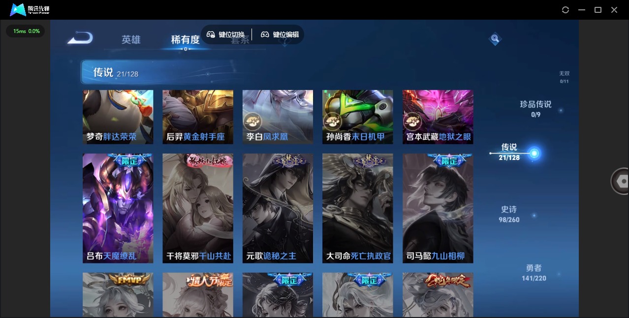 - PX_2097805-贵族等级: V7 英雄数: 40 皮肤数: 28 传说皮: 一念神魔,云诺千山 限定皮: 诗剑行