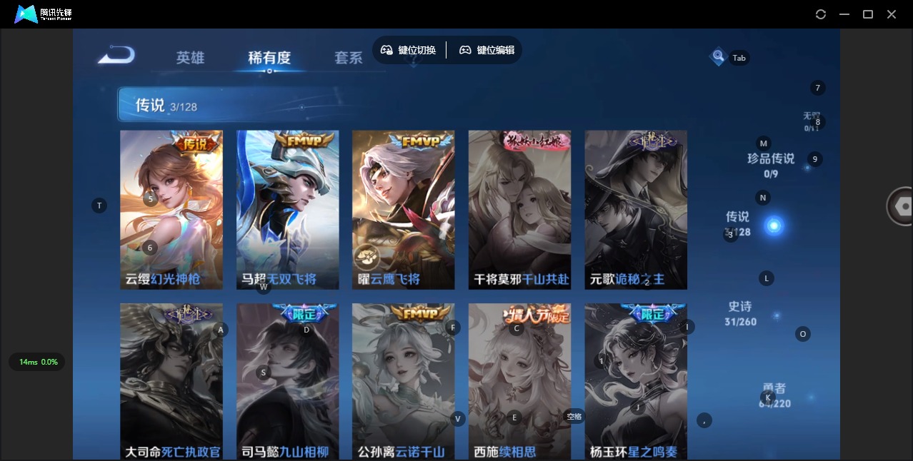 - [11632468]V10 11典藏 37传说 124英雄 253皮肤 典藏英雄武则天 可修改实名 优质装备:天鹅之梦(小乔典藏),星空梦想(太空人),倪克斯神谕(宇宙婆娘),活力突击,杀手不太冷,大秦宣太后,鸣剑·曳影,全息碎影(猴子典藏),星域神启(倪克斯贼亮),九霄神辉(木兰典藏),赤影疾锋,黄金狮子座,黄金射手座,冠军飞将,云鹰飞将(小将军),绛天战甲(鸡嘴战神),黄金白羊座,猫影幻舞,久胜战神,炽阳神光,一念神魔,云霓雀翎,末日机甲-孙尚香(绿蚂蚱),仲夏夜之梦(大飞蛾),零号·赤焰,海洋之心,地狱之眼,胖达荣荣,乞巧织情,时之恋人-刘备(电焊工),淬星耀世,超时空战士-狄仁杰,末日机甲-孙策,碎云,神器·狴犴令,艾琳觅芳踪 珍宝阁皮:妄想食味 限定皮:武陵仙君(小桃花),异界灵契(白毛香),傲雪梅枪,补天,寅虎·展翼(孙膑年限),星穹之声,绯月行,时雨天司(水龙头),五谷丰年,武圣,如梦令-嫦娥,如梦令-后羿,真爱至上,纯白花嫁,孙行者,一生所爱,青春决赛季,匿光追影者,女儿国国王,寅虎·御盾(廉颇年限),寅虎·瑞焰(虎皮蛋子),寅虎·心曲(虎婆),寅虎·赤拳(老虎年限),时之祈愿-云中君,时之祈愿-瑶(瑶传限),百木心枪,玉兔公主,启示之音,匿光启智者,时之奇旅-妲己,神器·万象笔,梦圆繁星 史诗皮:龙之律动,百相守梦-黄忠,紫霞仙子,苍穹之光,电玩小子(小书包),白龙吟,黄金分割率,特工魅影,千年之狐,偶像歌手,龙骑士(小龙虾),暗夜猫娘,魅语,无限星赏官,冰冠公主,末日机甲-吕布,猫狗日记-孙策,猫狗日记-大乔,时之恋人-孙尚香,乱世虎臣,节奏热浪,修罗,女仆咖啡,摇滚巨星,水果甜心,绅士熊喵,天才门将,星夜王子,心灵骇客,时之奇旅-安琪拉,功夫厨神,暗隐猎兽者,幽灵船长,鬼剑武藏,暗渊魔法,心灵战警,乐园奇幻夜,天秀·启明,舞动绿茵,地狱岩魂,缤纷独角兽,乘风破浪,逐浪之夏,龙鼓争鸣,月团寄思,水晶猎龙者,曙光守护者,热力回旋,箭羽风息,唤灵魅影,金属风暴,圣诞狂欢,圣诞恋歌,暗夜贵公子,魅力维加斯,雪上飞焰,寅虎·御盾,无心,未来纪元-赵云