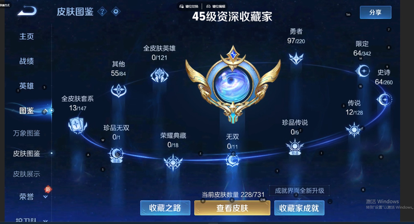 - [11604388]V9 2典藏 3珍品传说 21传说 125英雄 343皮肤 可修改实名 荣耀水晶:鸣剑·曳影,全息碎影(猴子典藏) 珍品传说:江户川柯南,怪盗基德,时之奇旅-孙策 传说皮:乘龙·淬吴钩(孙策年限),幻光神枪,玄雷天君,黄金射手座,地狱火,地狱之眼,一念神魔,淬星耀世,久胜战神,云鹰飞将(小将军),飞鸢探春,妄想实况,遇见神鼓 珍宝阁皮:万物之道,蔷薇恋人,玩趣恶龙 限定皮:愿照·山河定(司空震年限),逐霄战戟,陌上桑,鸣野蒿,至尊宝,白虎志(电光耗子),异界灵契(白毛香),傲雪梅枪,时雨天司(水龙头),神威(电光马子),高山流水,怒海麟威,降魔,五谷丰年,祈雪灵祝(雪兔子),天狼绘梦者,李小龙,逐梦之影,大圣娶亲 史诗皮:百相守梦-百里守约,星界战将,茶境仙,器灵·浮梦炉,化蝶舞,灵蛊蚀心,龙之律动,破空之剑,遇见神鹿,紫霞仙子,电玩小子(小书包),白龙吟,黄金分割率,特工魅影,千年之狐,永昼,江河有灵,高渐离燃音魔法,蒙恬荣光圣徽,偶像歌手,青蛇,晚萤,暗夜猫娘,无限星赏官,末日机甲-吕布,猫狗日记-孙策,猫狗日记-大乔,乱世虎臣,节奏热浪,修罗,女仆咖啡,摇滚巨星,水果甜心,绅士熊喵,天才门将,星夜王子,心灵骇客,功夫厨神,德古拉伯爵,暗隐猎兽者,幽灵船长,鬼剑武藏,心灵战警,乐园奇幻夜,天秀·启明,舞动绿茵,地狱岩魂,纤云弄巧,拒霜思,缤纷独角兽,乘风破浪,逐浪之夏,月团寄思,水晶猎龙者,曙光守护者,金属风暴,原初追逐者,圣诞狂欢,圣诞恋歌,鹰眼统帅,魅力维加斯,黎明之约,赏金猎手,无心,未来纪元-赵云