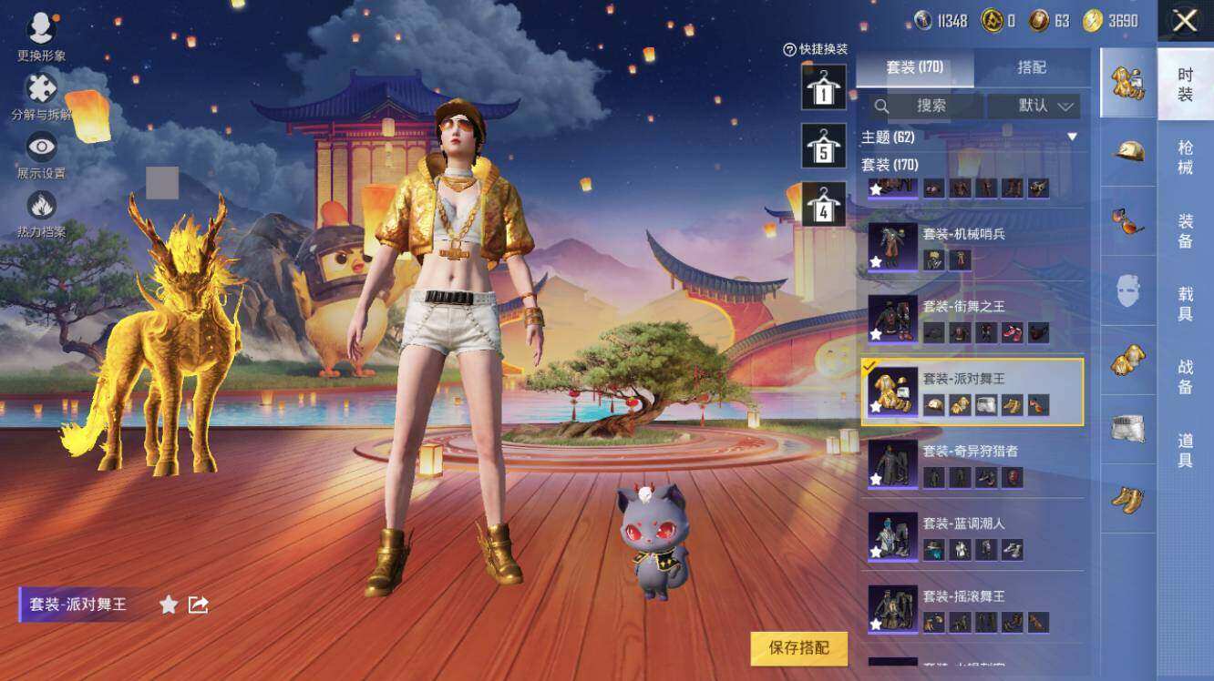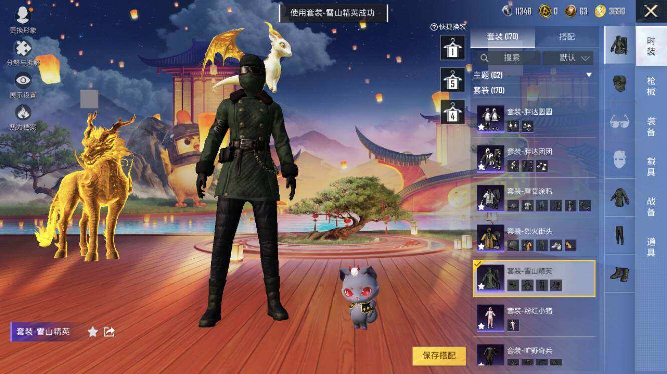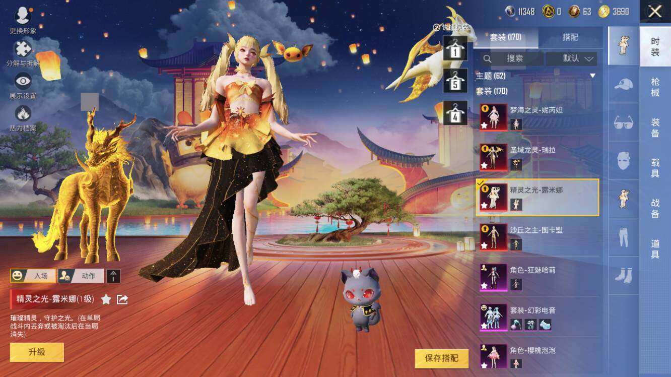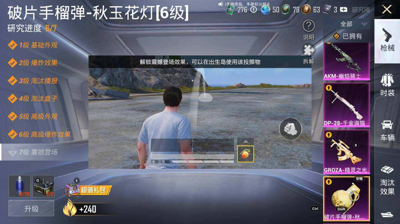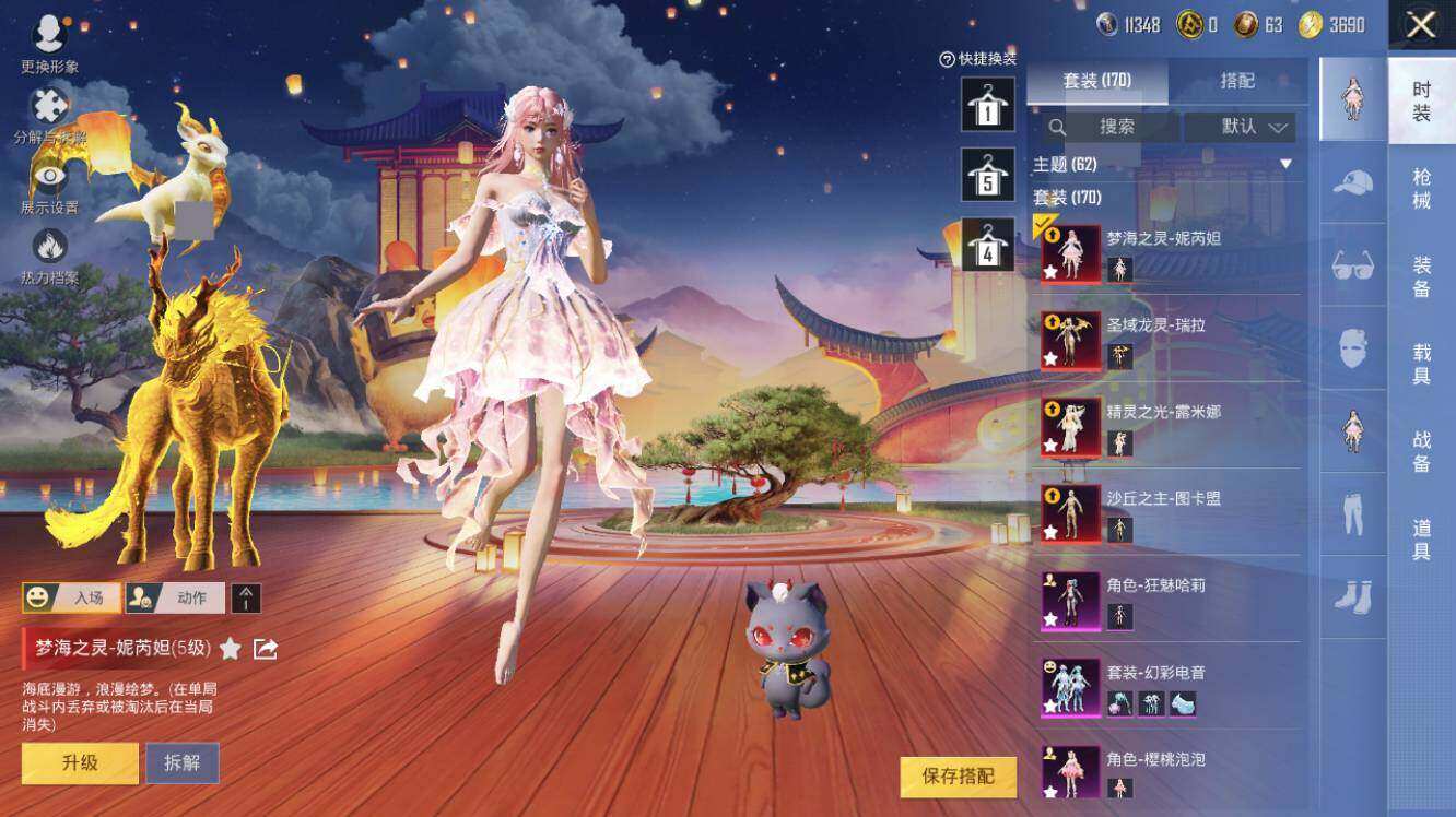 AKM-幽焰骑士,SCAR-L-金蛇镇世,M416-心之恋语,M416-电玩时刻,GROZA-精灵之光,AUG-暖羊咩咩,Famas-觉醒初号机,UMP45-量子极限,Kar98K-巳巳如意,Kar98K-圣域龙灵,M200-梦海之灵,DP-28-圣堂之誓,DP-28-千金淑猫,PKM-江南烟雨,破片手榴弹-秋玉花灯