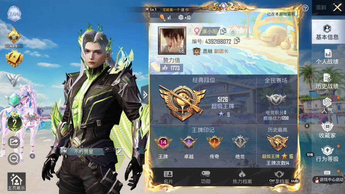 - PX_2071601-苹果QQ 历史总热力值:77930 粉装数量:16 特效枪数量:7 载具数量:4 王牌印记:17 历史最高段位:传奇王牌20星 套装数量:164 时装数量:604 枪械数量:221 战备数量:156 装备数量:268 载具:仰望U8(龙石绿),仰望U7(阿盖尔紫),仰望U9(赤霞丹朱),宾利欧陆GT敞篷(火焰橘) 时装:套装-天使彩虹糖,套装-恐龙拽拽,套装-新星烈龙,套装-