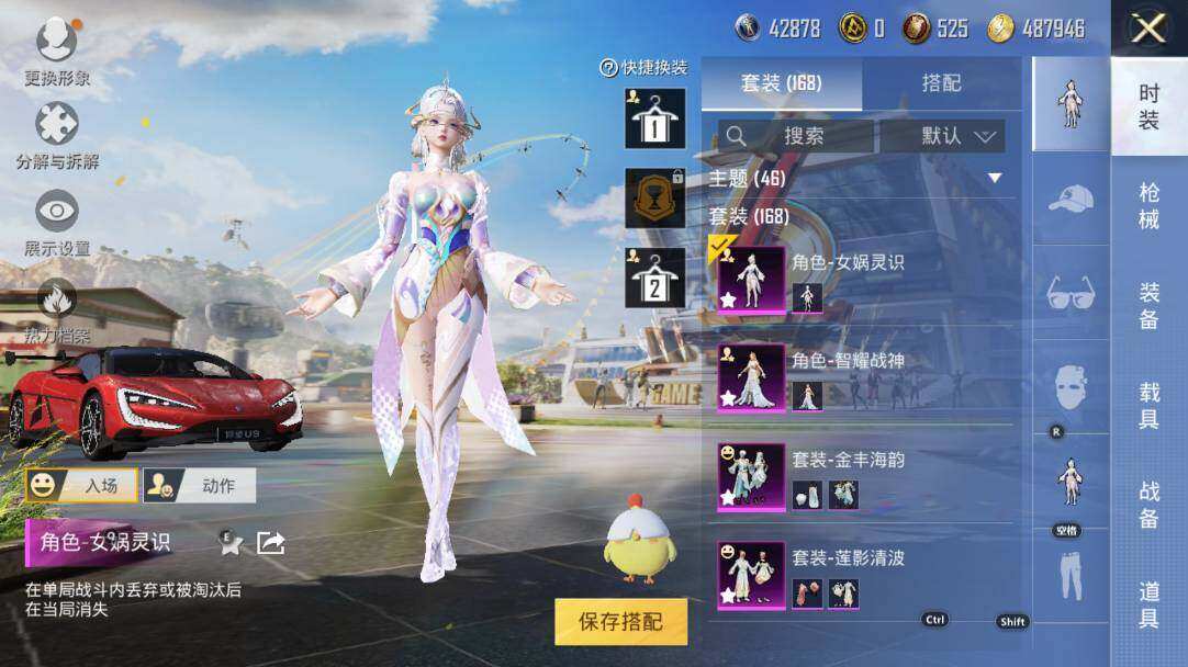 套装-第五大道,角色-女娲灵识,套装-射星猎手,角色-复仇流浪者,套装-金丰海韵,套装-莲影清波,角色-美雪