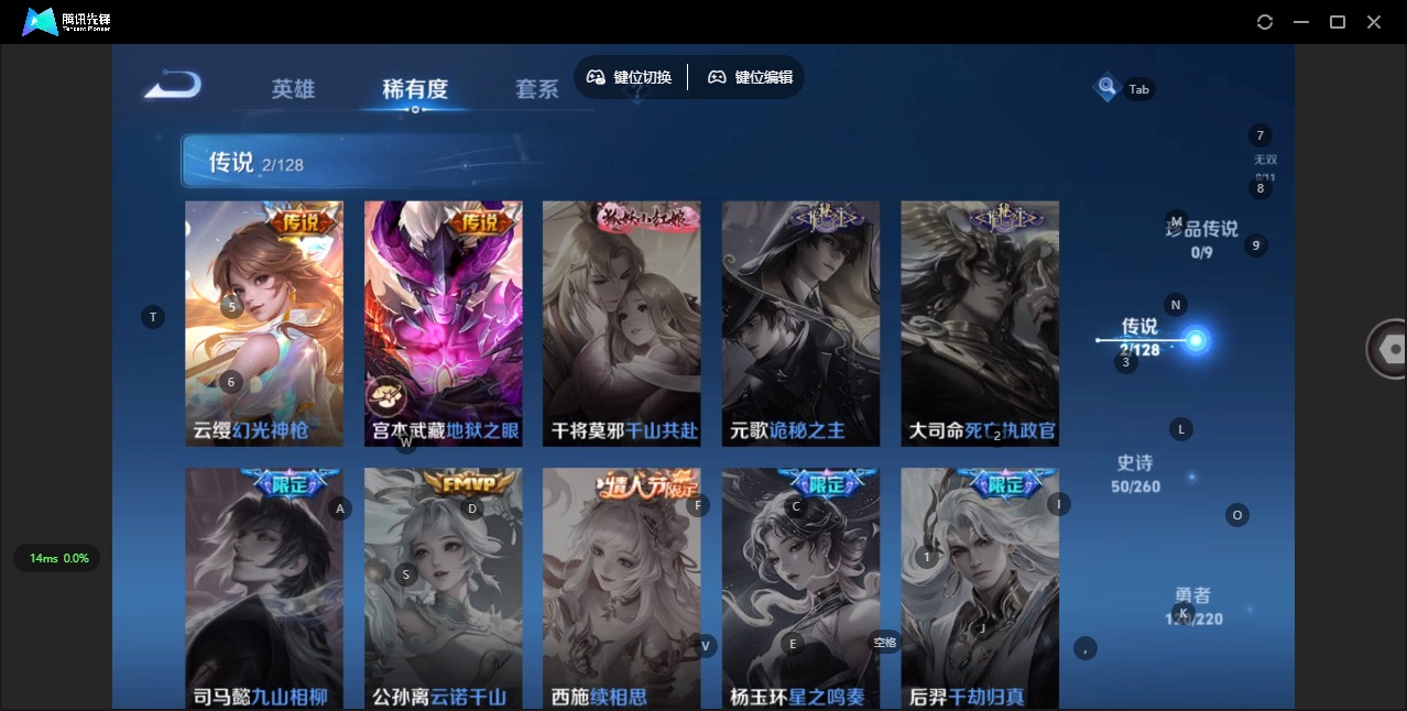 - [11337867]V7 1典藏 8传说 122英雄 179皮肤 可修改实名 荣耀水晶:鸣剑·曳影 传说皮:淬星耀世,云鹰飞将(小将军) 珍宝阁皮:优雅恋人,蔷薇恋人 限定皮:鸣野蒿,前尘镜,绯月行,飞衡(韩信年限),山海·碧波行(瑶年限),高山流水,诗剑行,五谷丰年,游园惊梦,天狼狩猎者,李小龙,玄武志(苏烈年限),默契交锋-兰陵王,枫霜尽,匿光启智者,山海·玄木吟(马可年限) 史诗皮:紫霞仙子,苍穹之光,白龙吟,特工魅影,千年之狐,冰冠公主,电玩·爆裂旋风,末日机甲-吕布,乱世虎臣,节奏热浪,修罗,女仆咖啡,水果甜心,星夜王子,功夫厨神,暗隐猎兽者,鬼剑武藏,地狱岩魂,纤云弄巧,繁星吟游(呼啦呼啦),乘风破浪,逐浪之夏,水晶猎龙者,金属风暴,圣诞恋歌,鹰眼统帅,赏金猎手,无心