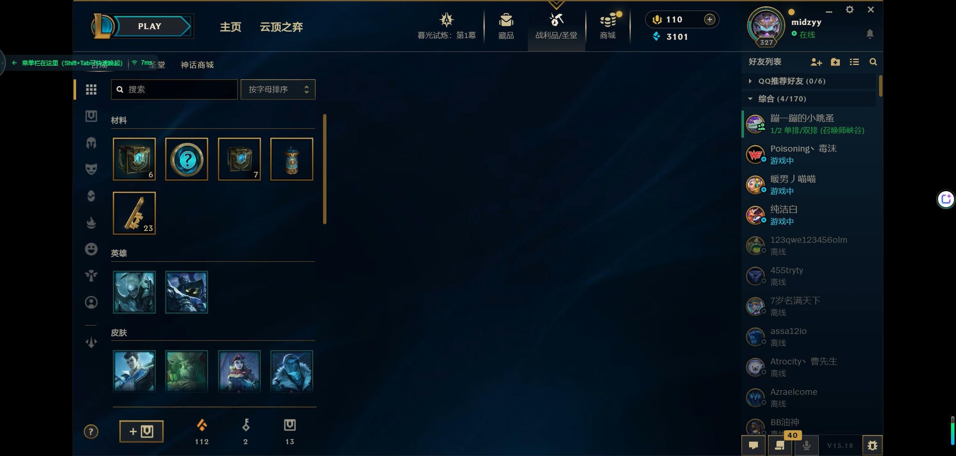 - [11824192]V6 5传说 124英雄 180皮肤 可修改实名 优质装备:淬星耀世,无双飞将,山海·炽霜斩(李信年限) 珍宝阁皮:胡桃夹子,万物之道 限定皮:逐霄战戟,鸣野蒿,至尊宝,遇见飞天,齐天大圣,五谷丰年,游园惊梦,梁祝 史诗皮:石田雨龙,紫霞仙子,黄金分割率,特工魅影,千年之狐,电玩·爆裂旋风,江河有灵,百解令(蒙犽),蒙恬荣光圣徽,偶像歌手,猫狗日记-孙策,节奏热浪,女仆咖啡,摇滚巨星,水果甜心,天才门将,心灵骇客,暗隐猎兽者,幽灵船长,鬼剑武藏,地狱岩魂,纤云弄巧,缤纷独角兽,乘风破浪,圣诞狂欢,圣诞恋歌,鹰眼统帅,王者之锤,魅力维加斯,黎明之约,无心,未来纪元-赵云