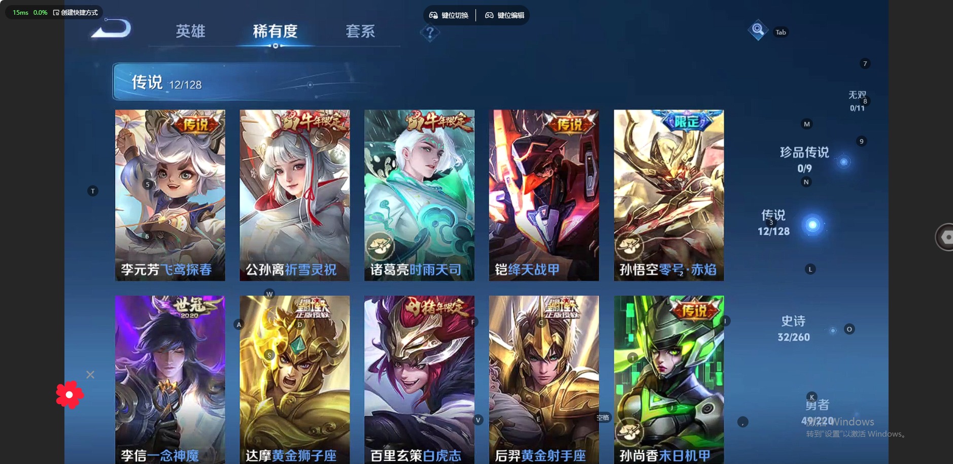 - [11497624]V7 7传说 122英雄 215皮肤 可修改实名 传说皮:黄金狮子座,地狱火,无双飞将,遇见神鼓 珍宝阁皮:妄想食味,胡桃夹子 限定皮:鸣野蒿,至尊宝,傲雪梅枪,五谷丰年,武圣,梁祝,天狼征服者,李小龙,寅虎·瑞焰(虎皮蛋子) 史诗皮:茶境仙,蔬乡物语(鲁班七号),超元猎域,乘龙·忆丹青(大乔年限),化蝶舞,破空之剑,遇见神鹿,紫霞仙子,电玩小子(小书包),黄金分割率,特工魅影,千年之狐,江河有灵,百解令(蒙犽),蒙恬荣光圣徽,青蛇,电玩·爆裂旋风,猫狗日记-孙策,乱世虎臣,节奏热浪,修罗,女仆咖啡,摇滚巨星,水果甜心,天才门将,星夜王子,心灵骇客,功夫厨神,德古拉伯爵,暗隐猎兽者,鬼剑武藏,暗渊魔法,心灵战警,乐园奇幻夜,舞动绿茵,地狱岩魂,纤云弄巧,缤纷独角兽,乘风破浪,逐浪之夏,水晶猎龙者,曙光守护者,箭羽风息,金属风暴,圣诞狂欢,圣诞恋歌,鹰眼统帅,魅力维加斯,无心,未来纪元-赵云