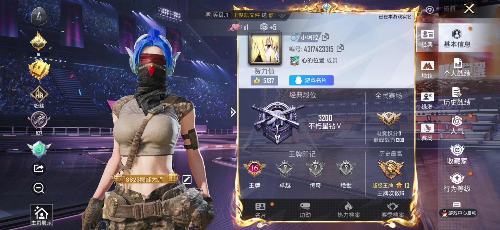 - [11603586]总资产:94.1M 7传说枪械 哈夫币:60.997K 高级安全箱(9.17到期) 可二次 可修改实名 烽火地带段位:钻石 全面战场段位:列兵 传说武器皮肤:SCAR-H战斗步枪-铁艺苍穹,腾龙突击步枪-捞点薯条,93R-捞点薯条,勇士冲锋枪-能天使-午夜邮差,复合弓-黑-天际线,725双管霰弹枪-送葬人-无题密令,M4A1突击步枪-阿米娅 史诗武器皮肤:PTR-32战斗步枪-ACE,QBZ95-1突击步枪-ACE,M4A1突击步枪-特勤执行,Vector冲锋枪-红色彗星,AUG突击步枪-特勤执行,M700狙击步枪-蝮蛇,G3战斗步枪-战场英杰,M1014霰弹枪-林中猎手,AKM突击步枪-林中猎手,M16A4突击步枪-竞赛选手,SV-98狙击步枪-林中猎手,AS Val突击步枪-典狱官,SV-98狙击步枪-囚徒,PSG-1射手步枪-无垢,SR-3M紧凑突击步枪-荒野求生,PKM通用机枪-荒野求生,沙漠之鹰-曙光,Vector冲锋枪-阿萨拉文明,S12K霰弹枪-曙光,PKM通用机枪-英雄,QSZ92G-风林火山