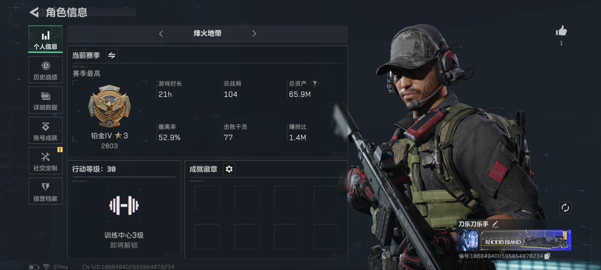 [12199512]总资产:65.9M 1传说枪械 哈夫币:44.364K 可二次 安全保护中 可修改实名 烽火地带段位:铂金 全面战场段位:无段位 传说武器皮肤:M4A1突击步枪-阿米娅