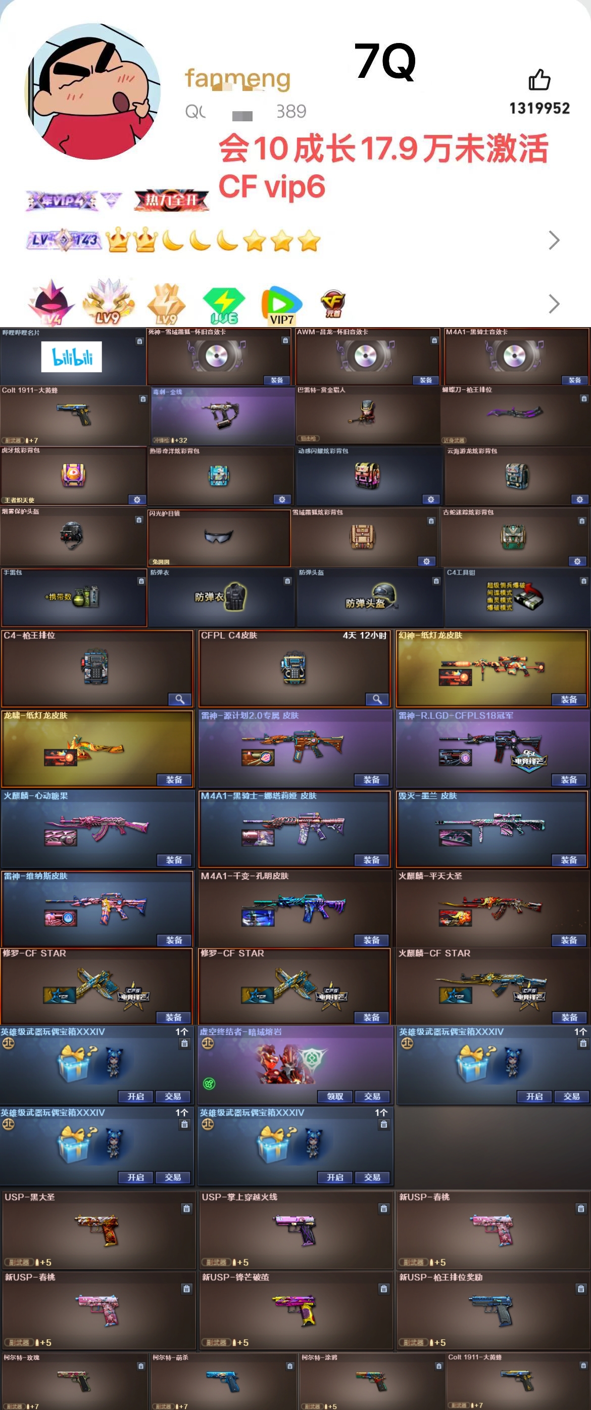 [12200310]南部55V有二次 7Q143级会10黄9绿6影视7大4CF会员6 幻神+纸灯笼 三种QBZ 星神 朱雀 白虎 COP云龙 王者之怒 毁灭墨兰 雷神18冠军 毒刺 哔哩哔哩名片 黑骑士三件套 四防王者炽天使