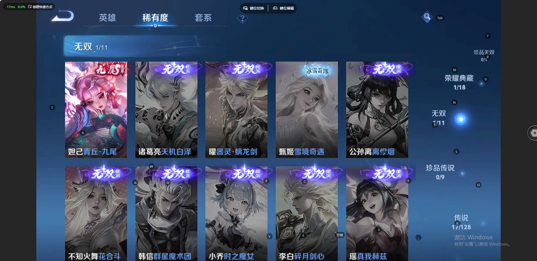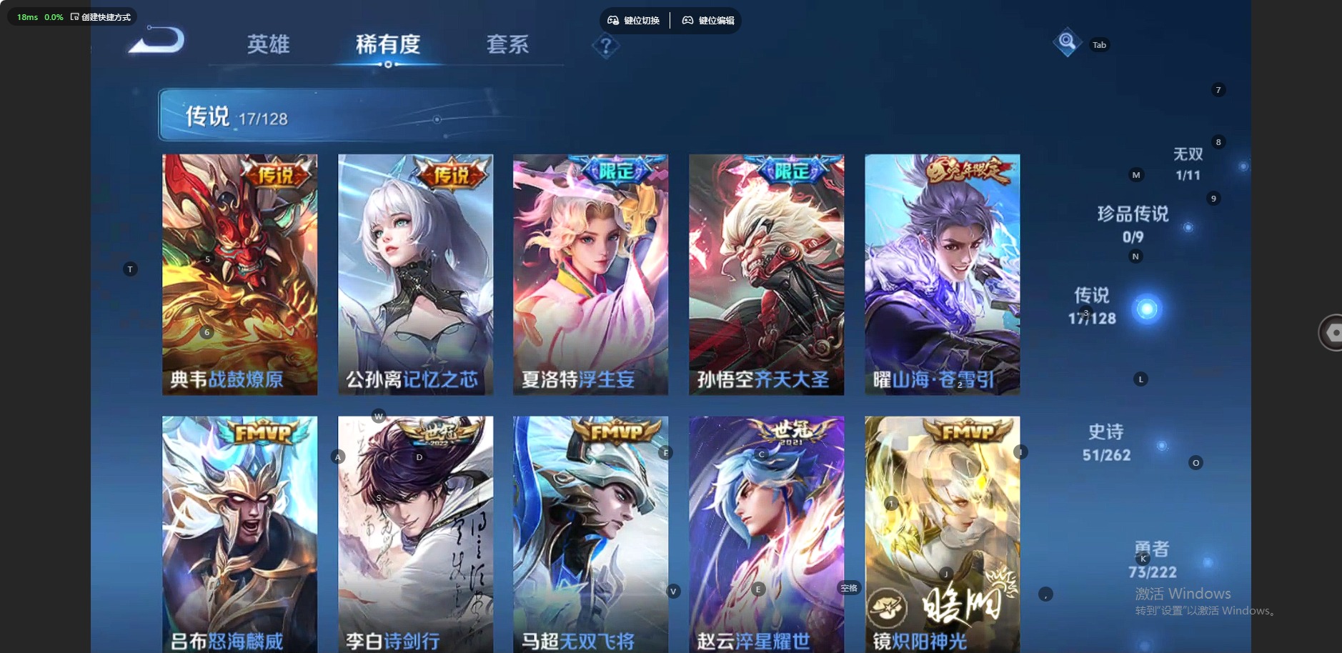 - [11547533]V6 4传说 121英雄 151皮肤 可修改实名 优质装备:零号·赤焰 传说皮:幻光神枪 珍宝阁皮:胡桃夹子 限定皮:愿照·九州拓(澜年限),鸣野蒿,李小龙 史诗皮:化蝶舞,龙之律动,藏狐·褐绒,石田雨龙,破空之剑,紫霞仙子,黄金分割率,千年之狐,偶像歌手,魅语,青蛇,猫狗日记-大乔,水果甜心,暗隐猎兽者,鬼剑武藏,心灵战警,纤云弄巧,乘风破浪,逐浪之夏,月团寄思,圣诞恋歌,鹰眼统帅,魅力维加斯,未来纪元-赵云