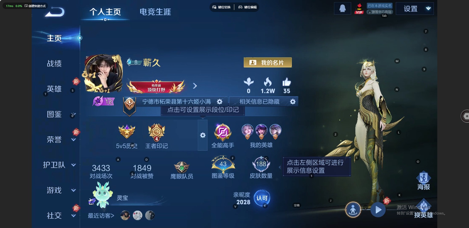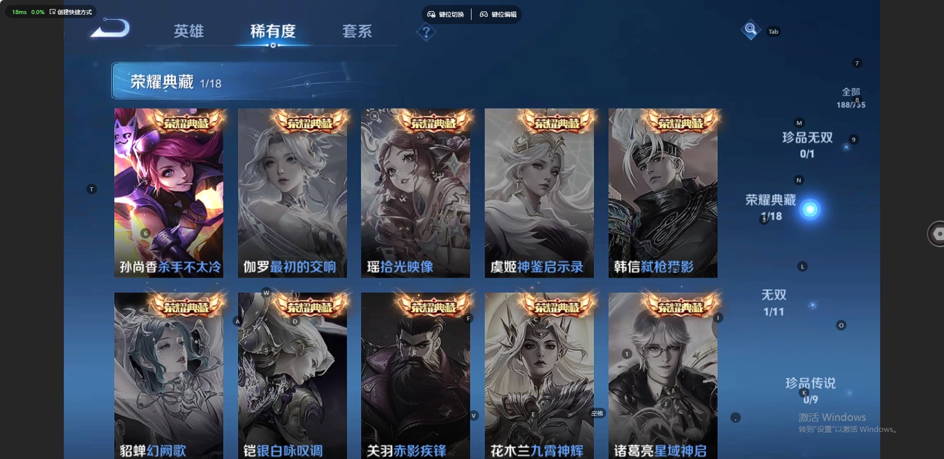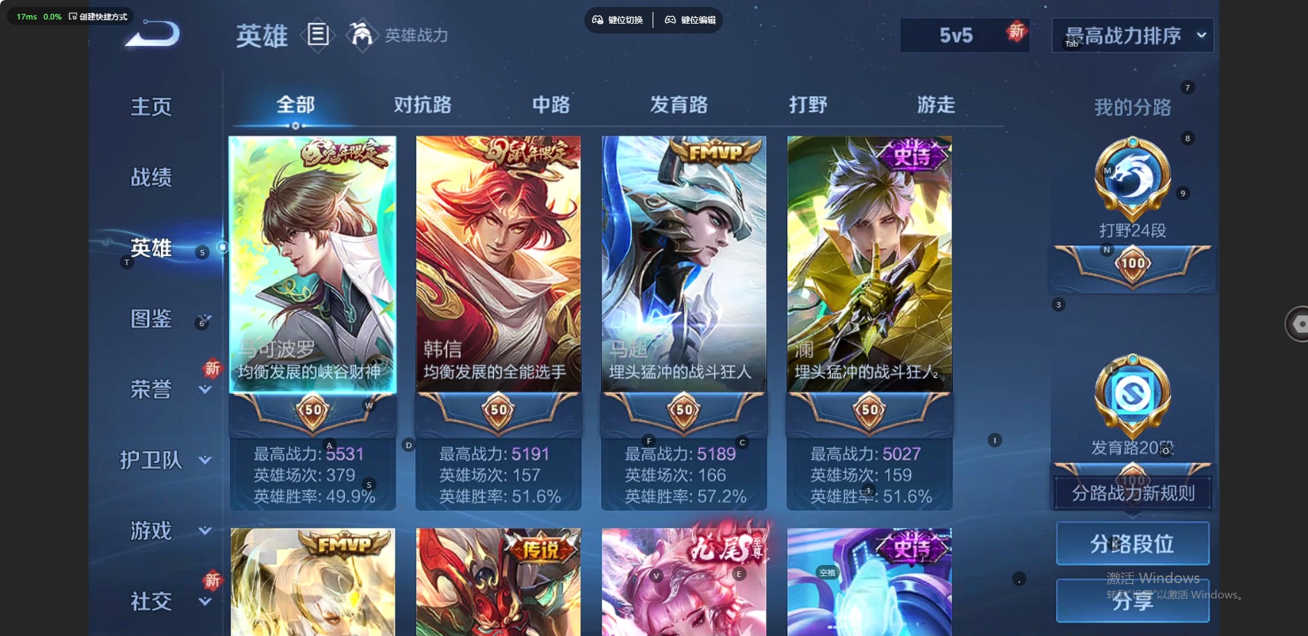 - PX_2066673-实名: 可修改 贵族等级: V4 英雄数: 120 皮肤数: 90 珍品传说: 怪盗基德 传说皮: 一念神魔 限定皮: 鸣野蒿,逐霄战戟