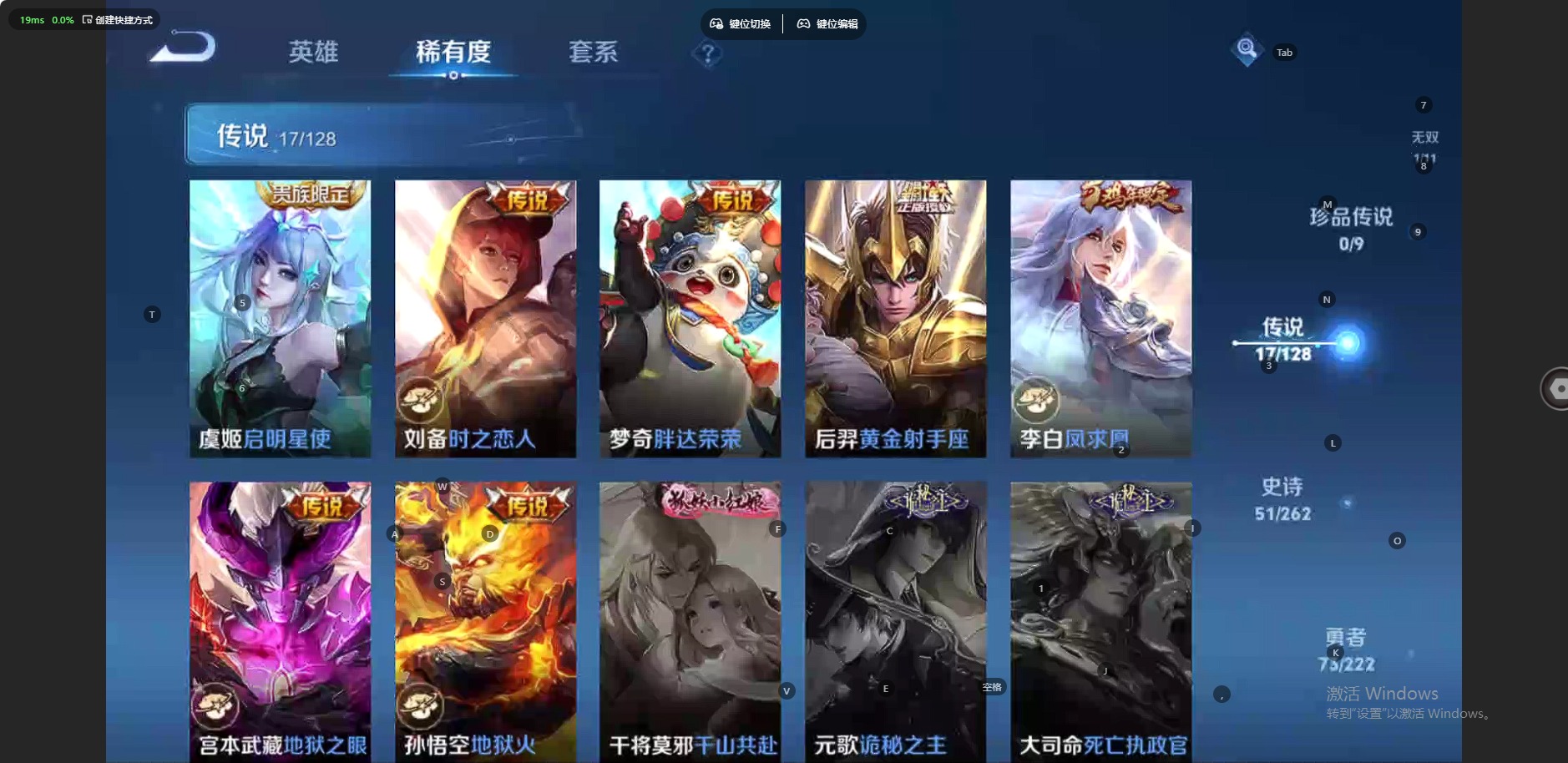 - [11632463]V7 1典藏 10传说 123英雄 216皮肤 可修改实名 优质装备:神鉴启示录,黄金射手座,云鹰飞将(小将军),久胜战神,一念神魔,零号·赤焰,时之恋人-刘备(电焊工),无双飞将 珍宝阁皮:胡桃夹子,女武神 限定皮:愿照·九州拓(澜年限),愿照·岁时盈(虞姬年限),愿照·众生和(妲己年限),神威(电光马子),高山流水,五谷丰年,梁祝,烈魂,逐梦之音,李小龙,逐梦之影,孙行者,山海·玄木吟(马可年限) 史诗皮:鸭鸭历险记-刘禅,化蝶舞,龙之律动,雪豹·霜爪,石田雨龙,茶境仙,百相守梦-百里守约,百相守梦-黄忠,紫霞仙子,白龙吟,黄金分割率,特工魅影,千年之狐,电玩·爆裂旋风,蒙恬荣光圣徽,偶像歌手,龙骑士(小龙虾),暗夜猫娘,晚萤,青蛇,末日机甲-吕布,猫狗日记-孙策,时之恋人-孙尚香,节奏热浪,修罗,女仆咖啡,水果甜心,星夜王子,心灵骇客,时之奇旅-安琪拉,德古拉伯爵,暗隐猎兽者,鬼剑武藏,心灵战警,乐园奇幻夜,地狱岩魂,缤纷独角兽,曙光守护者,热力回旋,金属风暴,圣诞狂欢,圣诞恋歌,鹰眼统帅,魅力维加斯,黎明之约,无心