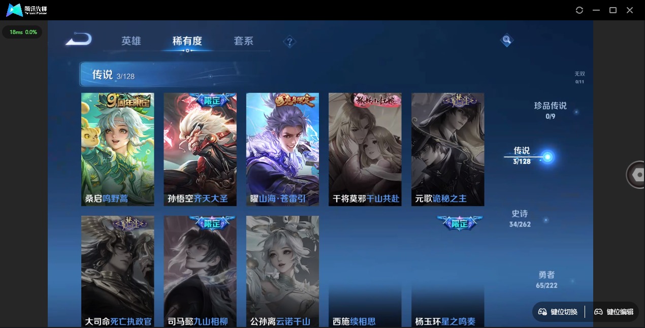 - [11293631]V6 5传说 123英雄 154皮肤 可修改实名 优质装备:久胜战神,地狱之眼,碎云 珍宝阁皮:玩趣恶龙 限定皮:愿照·九州拓(澜年限),鸣野蒿,梁祝,天狼绘梦者,李小龙,大圣娶亲 史诗皮:化蝶舞,星界战将,百相守梦-百里守约,破空之剑,特工魅影,千年之狐,冰冠公主,水果甜心,星夜王子,心灵骇客,功夫厨神,暗隐猎兽者,鬼剑武藏,天秀·启明,舞动绿茵,纤云弄巧,繁星吟游(呼啦呼啦),缤纷独角兽,乘风破浪,逐浪之夏,月团寄思,水晶猎龙者,鹰眼统帅,魅力维加斯