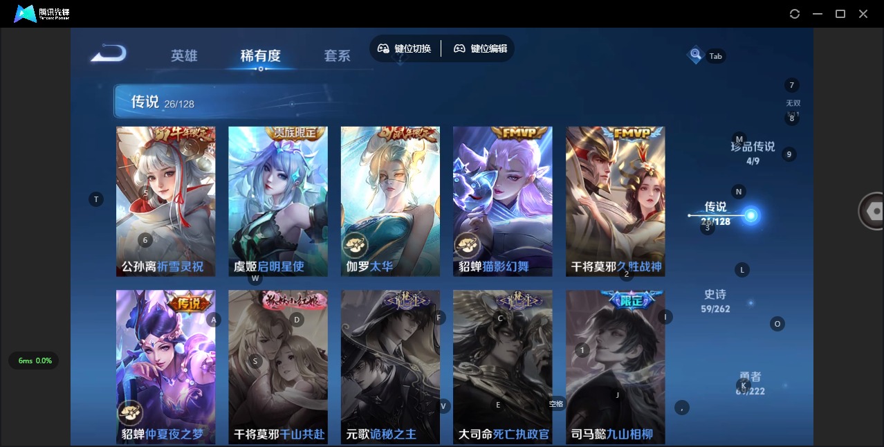 - [11913415]V7 1典藏 13传说 125英雄 249皮肤 可修改实名 优质装备:杀手不太冷,猫影幻舞,炽阳神光,地狱火,飞鸢探春,乞巧织情 传说皮:幻光神枪 珍宝阁皮:女武神,玩趣恶龙 限定皮:愿照·岁时盈(虞姬年限),愿照·众生和(妲己年限),愿照·千秋盛(女娲年限),至尊宝,太华(伽罗年限),异界灵契(白毛香),傲雪梅枪,白晶晶,时雨天司(水龙头),遇见飞天,高山流水,降魔,五谷丰年,游园惊梦,梁祝,天狼溯光者,祈雪灵祝(雪兔子),天狼绘梦者,李小龙,猪悟能 史诗皮:化蝶舞,灵蛊蚀心,龙之律动,茶境仙,织梦人,电玩小子(小书包),白龙吟,黄金分割率,特工魅影,千年之狐,魅语,冰冠公主,偶像歌手,晚萤,龙骑士(小龙虾),末日机甲-吕布,猫狗日记-孙策,乱世虎臣,节奏热浪,女仆咖啡,水果甜心,绅士熊喵,天才门将,心灵骇客,时之奇旅-安琪拉,功夫厨神,幽灵船长,鬼剑武藏,心灵战警,乐园奇幻夜,舞动绿茵,纤云弄巧,繁星吟游(呼啦呼啦),拒霜思,缤纷独角兽,乘风破浪,曙光守护者,唤灵魅影,金属风暴,圣诞狂欢,鹰眼统帅,暗夜贵公子,魅力维加斯,黎明之约,无心,未来纪元-赵云