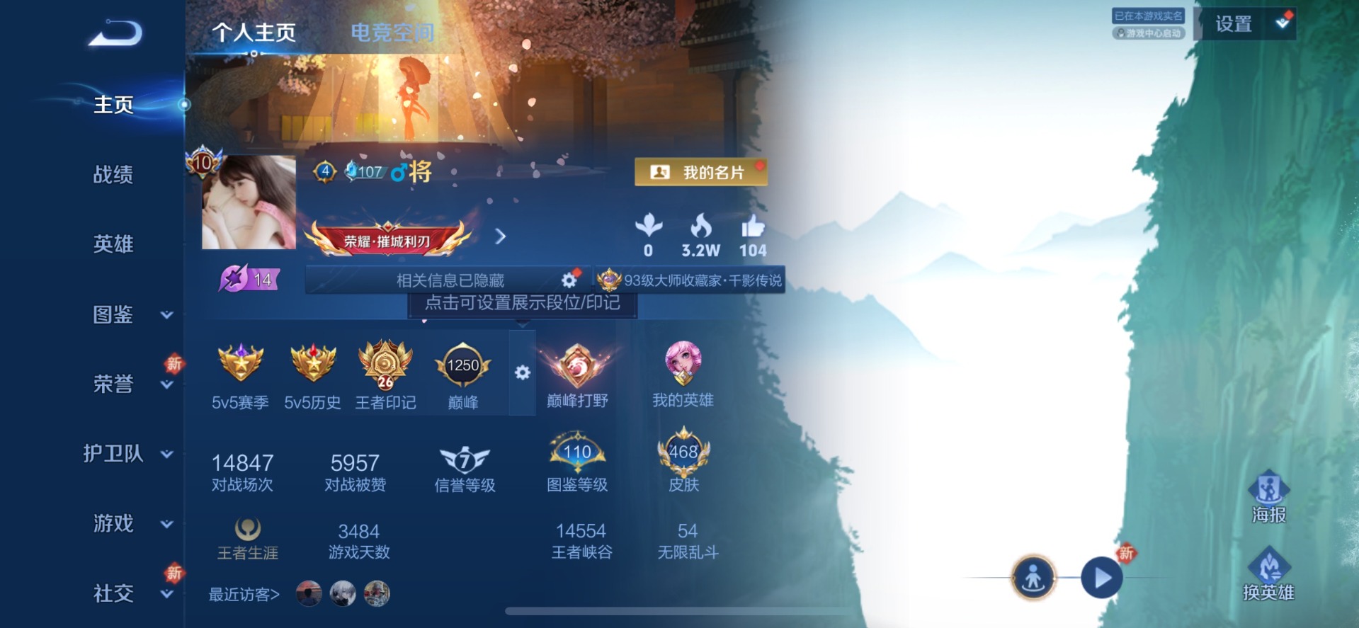 - PX_2059675-实名: 可修改 贵族等级: V6 英雄数: 123 皮肤数: 121 传说皮: 绛天战甲,地狱火,典韦战鼓燎原 限定皮: 傲雪梅枪,匿光决锋者,五谷丰年,鸣野蒿,逐霄战戟