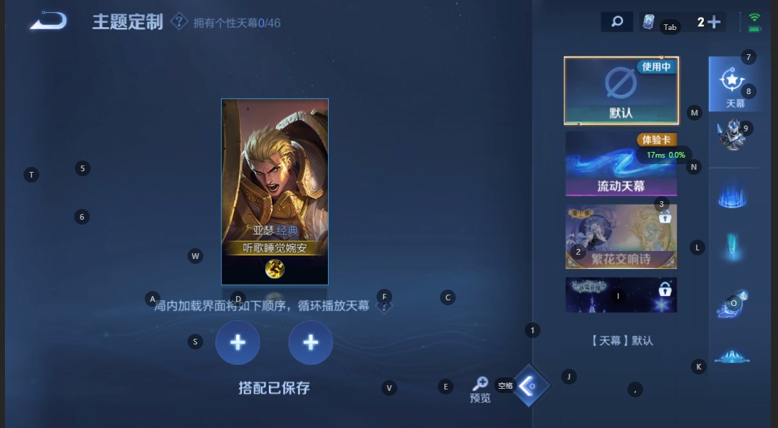 夏侯惇乘风破浪,廉颇地狱岩魂,孙策猫狗日记,露娜紫霞仙子,吕布末日机甲,刘禅绅士熊喵,宫本武藏鬼剑武藏,兰陵王暗隐猎兽者,花木兰水晶猎龙者,白起星夜王子,亚瑟心灵战警,嬴政摇滚巨星,百里玄策原初追逐者,雅典娜冰冠公主,雅典娜黎明之约,百里守约特工魅影,墨子金属风暴,王昭君偶像歌手