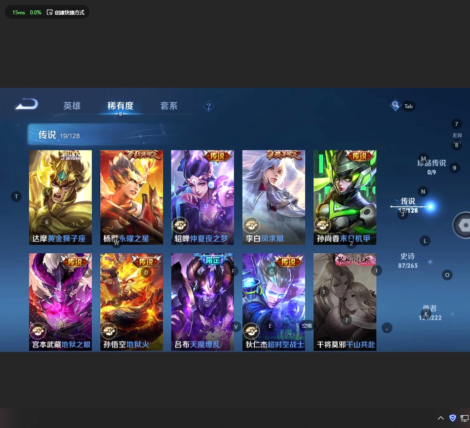 - [12063528]V9 2典藏 14传说 125英雄 281皮肤 典藏英雄武则天 可修改实名 优质装备:天鹅之梦(小乔典藏),杀手不太冷,黄金狮子座,黄金射手座,猫影幻舞,云霓雀翎,末日机甲-孙尚香(绿蚂蚱),地狱火,仲夏夜之梦(大飞蛾),海洋之心,挚爱之约,挚爱花嫁,涂山容容 珍宝阁皮:蔷薇恋人 限定皮:至尊宝,白虎志(电光耗子),梅西,武陵仙君(小桃花),补天,白晶晶,飞衡(韩信年限),瑞麟志(木兰年限),遇见飞天,匿光决锋者,青龙志(铠年限),天狼运算者,梁祝,御风骁将(吕布年限),天狼狩猎者,龙胆,逐梦之翼,天狼绘梦者,李小龙,逐梦之光,玄武志(苏烈年限),朱雀志(守约年限),奇迹圣诞,默契交锋-花木兰,一生所爱,大圣娶亲,青春决赛季,冰霜恋舞曲,云端筑梦师,蜜橘之夏,热情桑巴,神奇女侠,玉兔公主 史诗皮:遇见神鹿,紫霞仙子,电玩小子(小书包),黄金分割率,特工魅影,永昼,魅语,无限星赏官,冰冠公主,偶像歌手,晚萤,暗夜猫娘,猫狗日记-孙策,猫狗日记-大乔,乱世虎臣,节奏热浪,修罗,女仆咖啡,水果甜心,绅士熊喵,天才门将,星夜王子,心灵骇客,功夫厨神,德古拉伯爵,暗隐猎兽者,鬼剑武藏,天秀·启明,舞动绿茵,诗语江南,纤云弄巧,繁星吟游(呼啦呼啦),缤纷独角兽,乘风破浪,逐浪之夏,水晶猎龙者,曙光守护者,箭羽风息,唤灵魅影,圣诞狂欢,圣诞恋歌,鹰眼统帅,暗夜贵公子,魅力维加斯,奇遇舞章,未来纪元-赵云